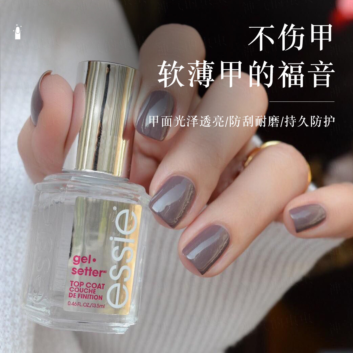 📚 essie红标顶油亮油gel setter透明指甲油快干耐磨持久微光疗免烤
