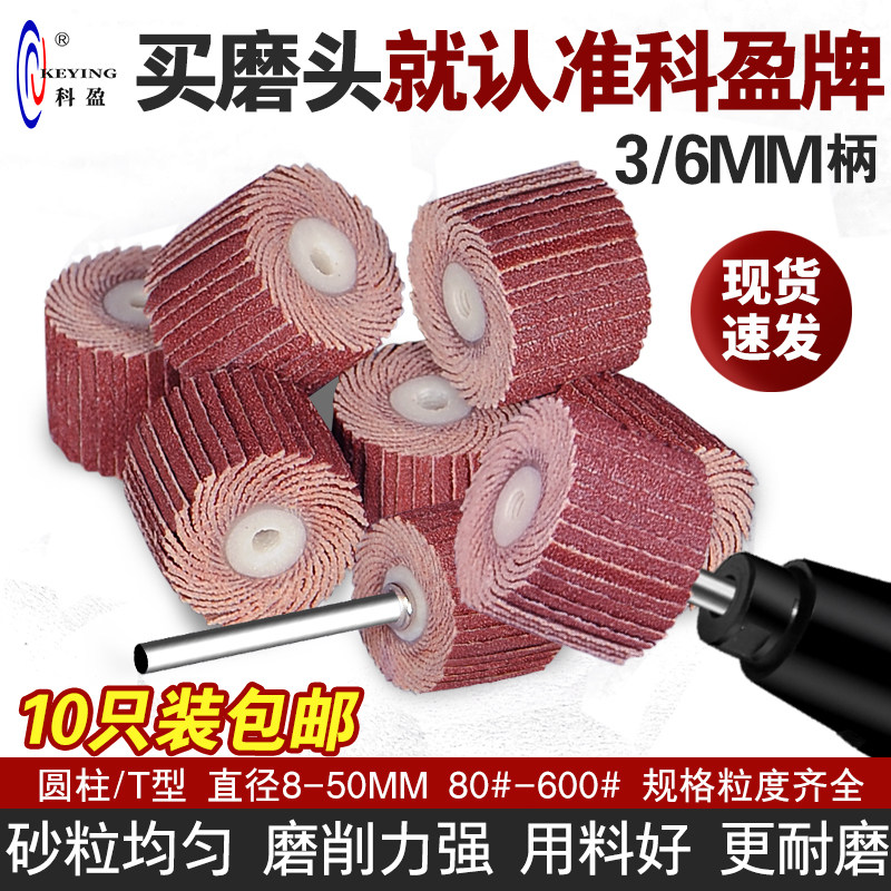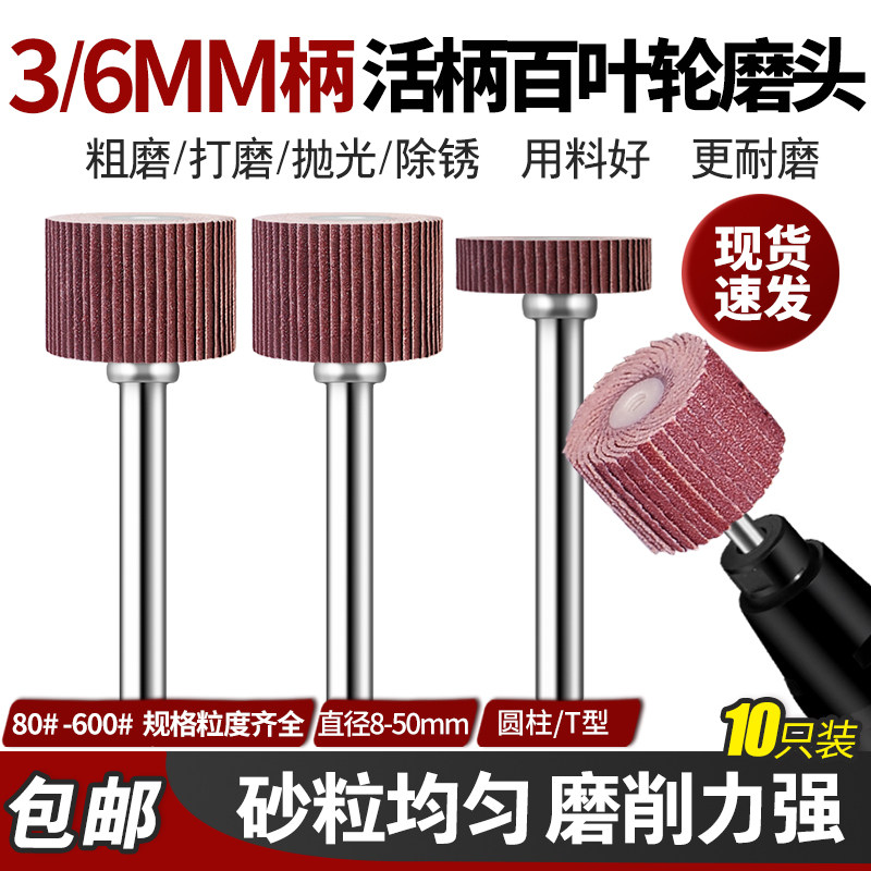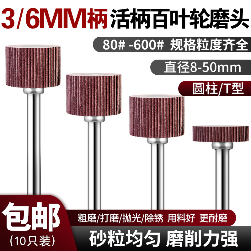 📚 活柄百叶轮磨头带柄砂纸砂布轮千叶轮抛光轮电磨内磨机气动打磨头