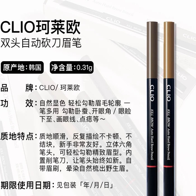 📚 新版~韩国CLIO/珂莱欧kill brow双头自动砍刀眉笔防水不脱妆自然