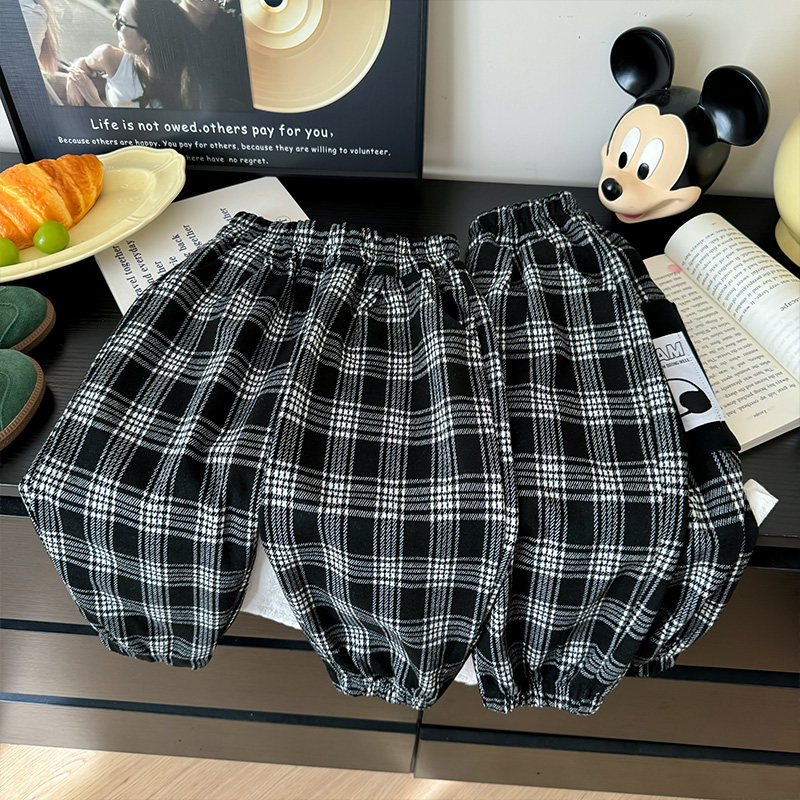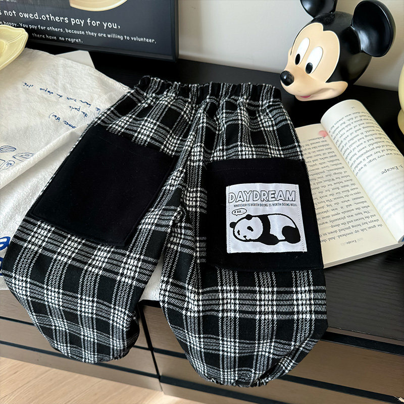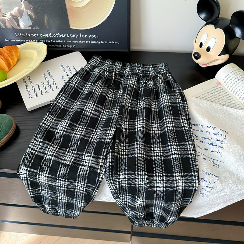📚 儿童裤子春秋季方格休闲裤男女童长裤中大童时尚个性裤子