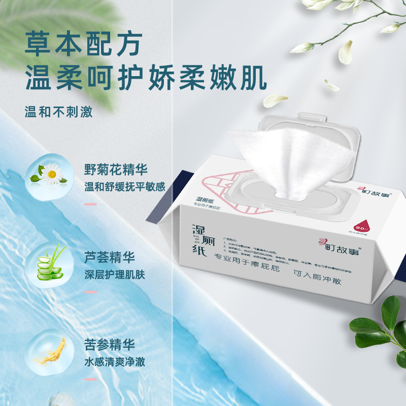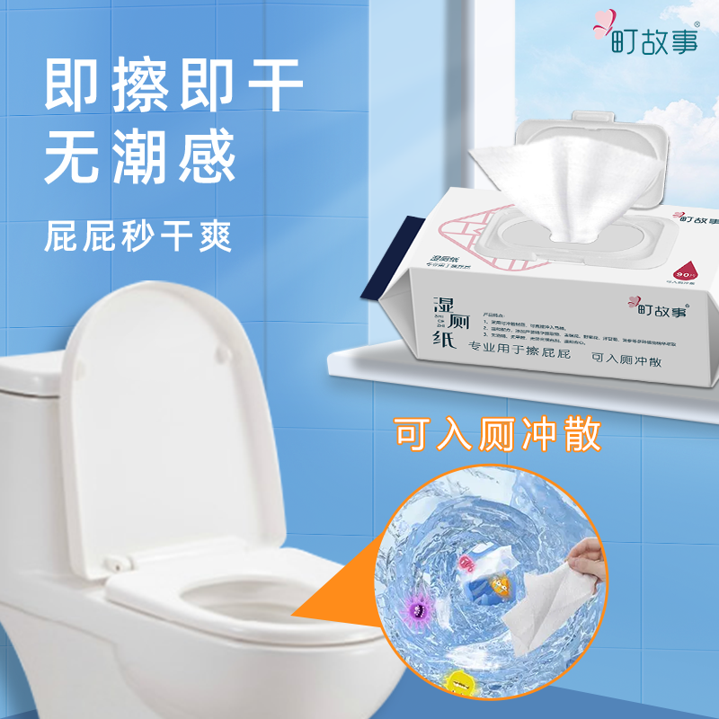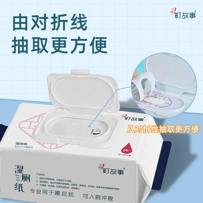 📚 町故事湿厕纸巾90抽加量加厚洁厕湿巾可入厕降解擦屁屁清爽湿纸巾