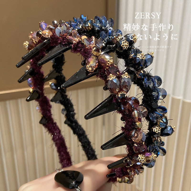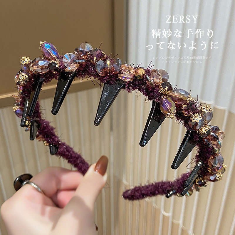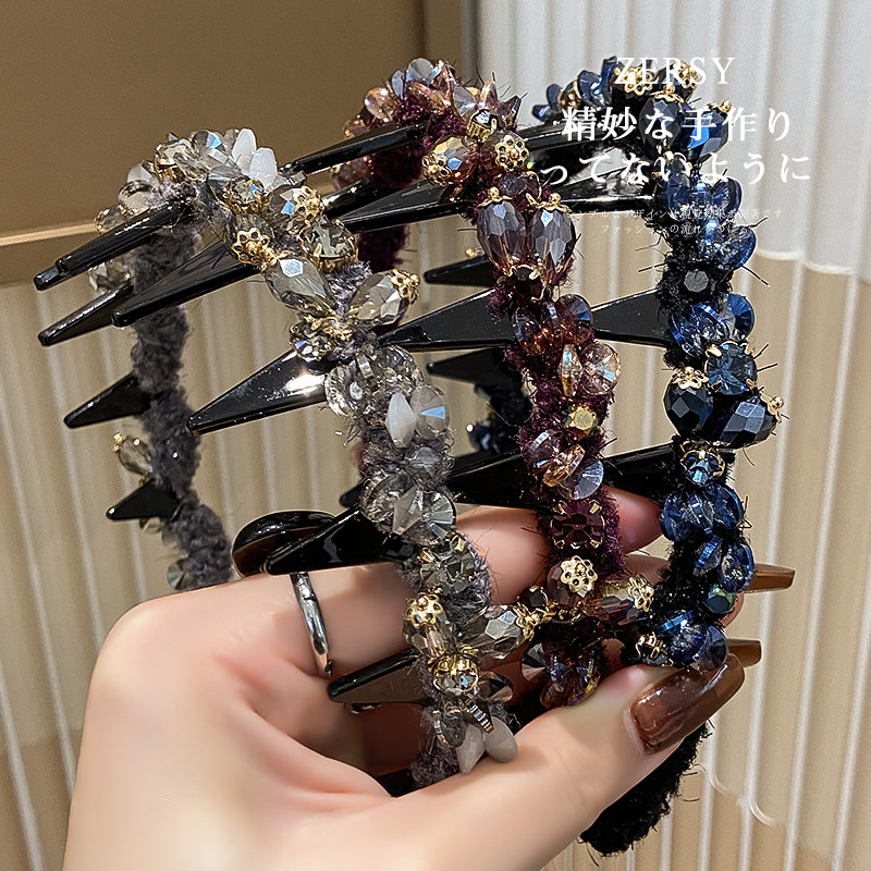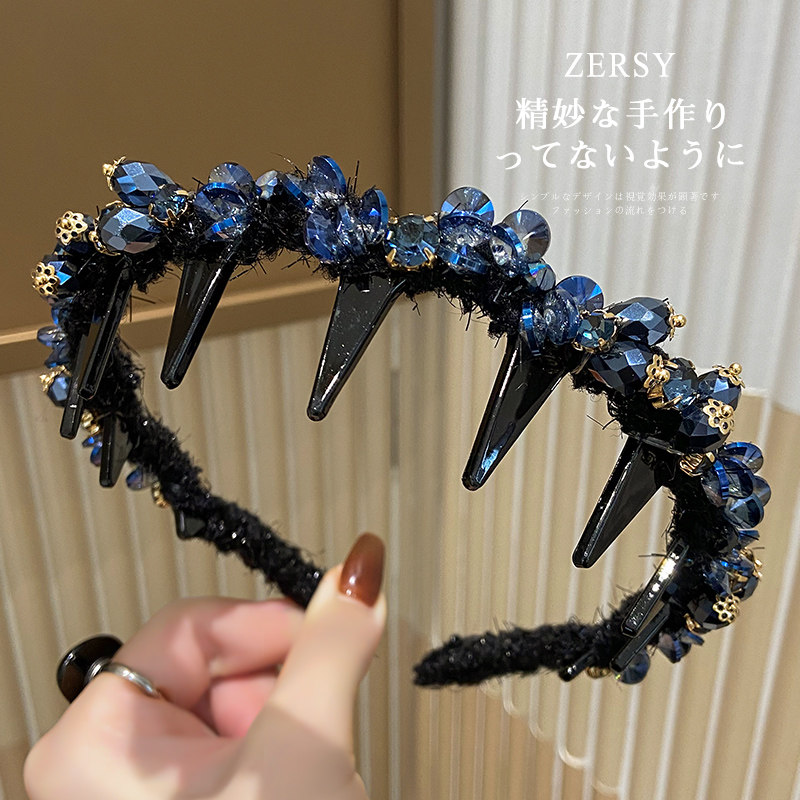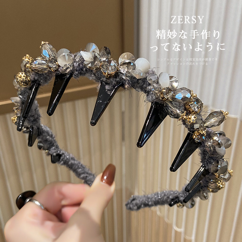 📚 复古重工水晶大波浪长齿发箍蓬松高颅顶显脸小压发头箍发卡头饰女