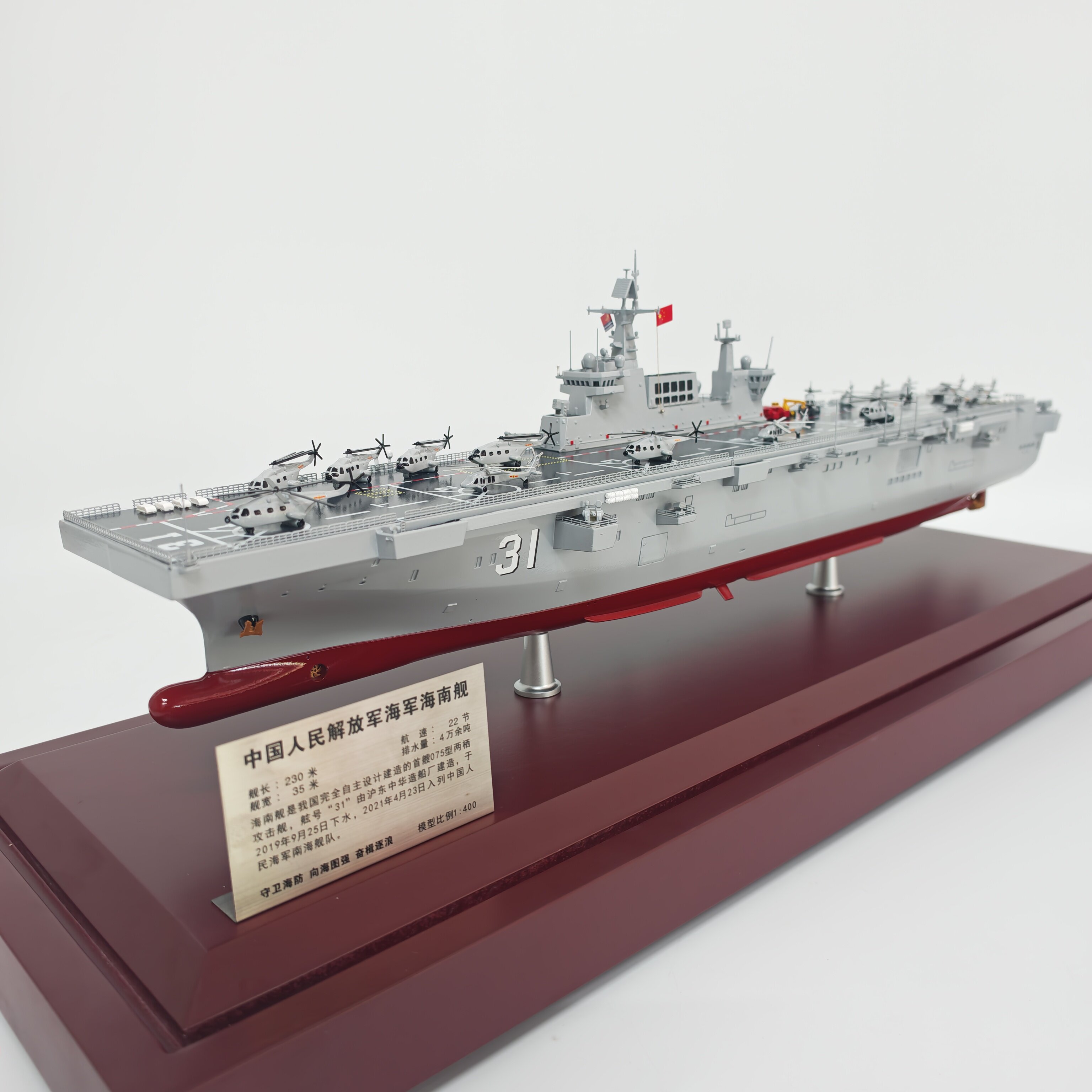 📚 075型两栖攻击舰海南舰广西舰安徽舰湖北舰仿真合金模型收藏纪念