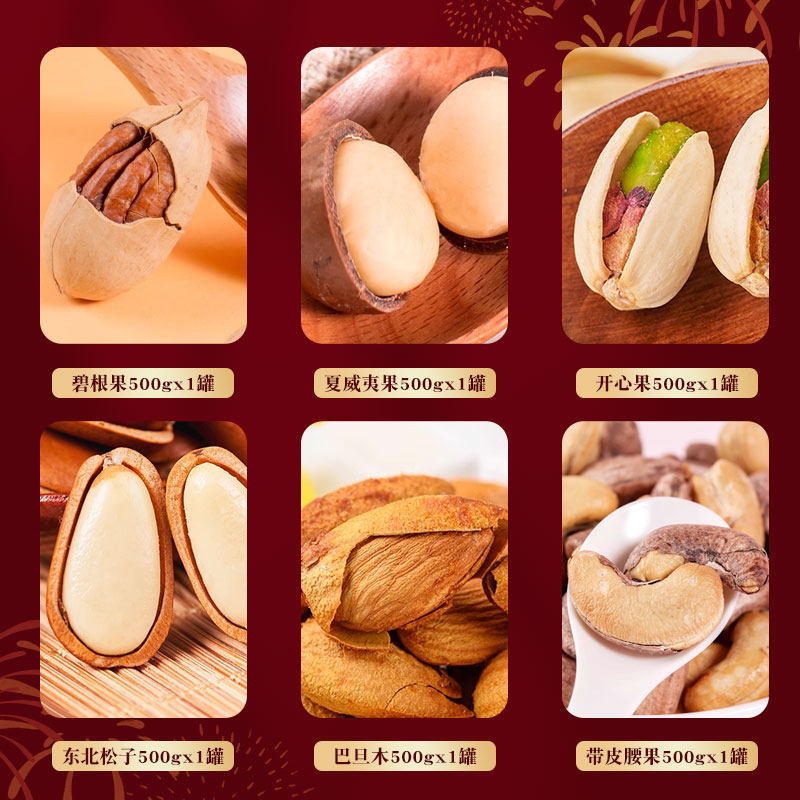 📚 坚果干果零食组合开心果巴旦木腰果松子罐装散装批发年货2025新货