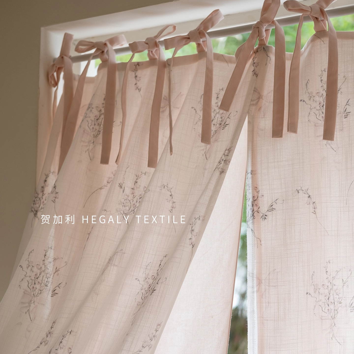 📚 HEGALY花间垂暖文艺氛围感分片款门帘小帘子小众设计粉色系带款
