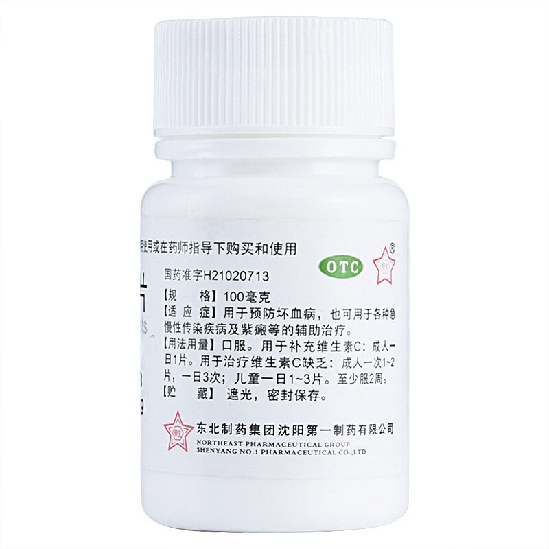 📚 正品东北制药维生素C片100片小瓶药片otc国字准药用vc口服维c