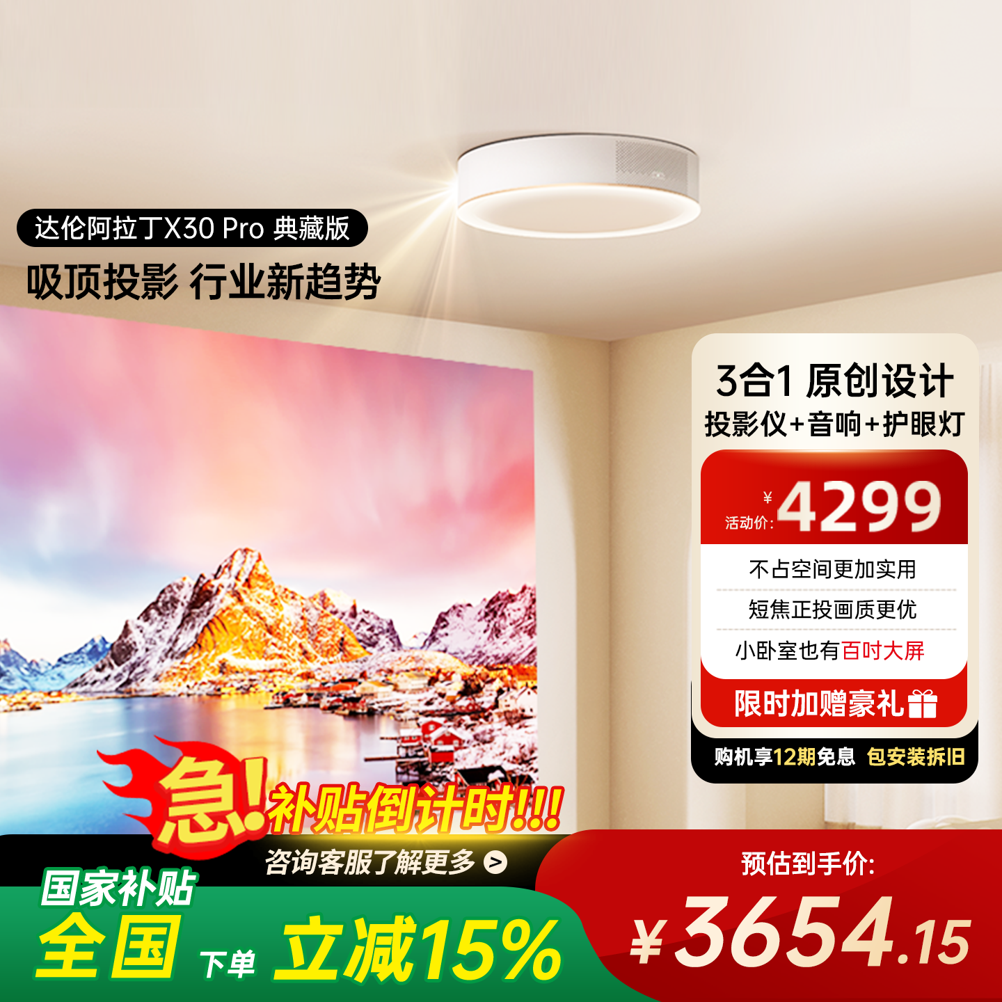 📚 【政府补贴】达伦阿拉丁神灯X30Pro典藏版智能超短焦吸顶灯投影机家用超高清卧室家庭影院娱乐吸顶灯投影仪