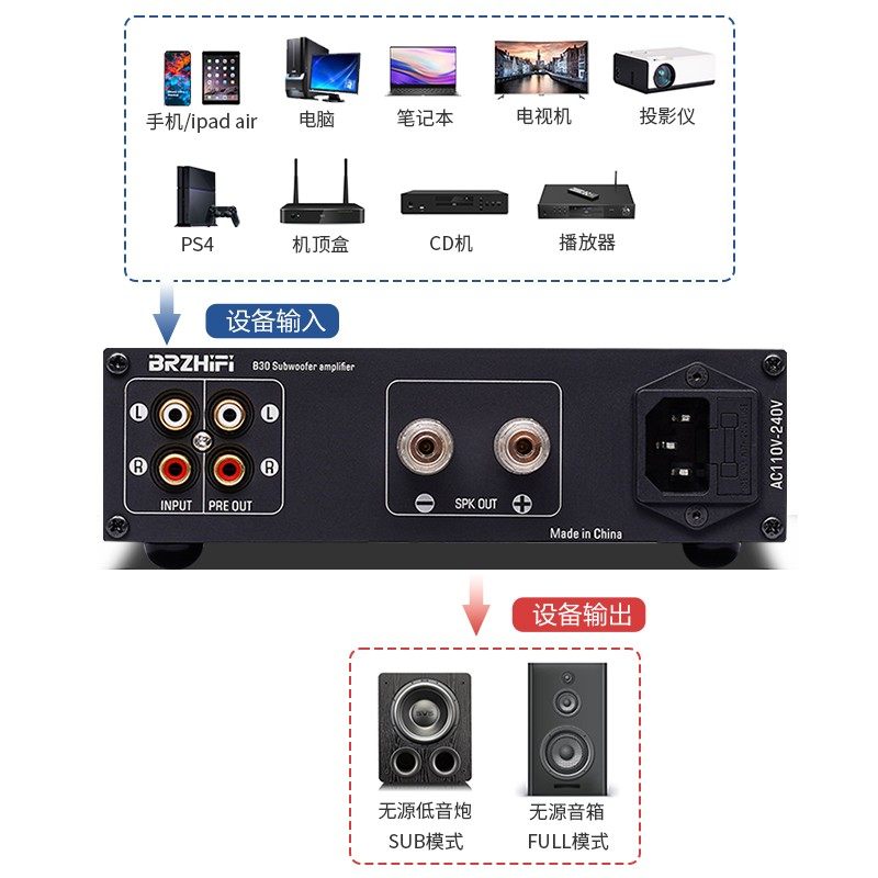📚 BRZHIFI B30单声道大功率全频/低音炮 TPA3255发烧数字功放机480W