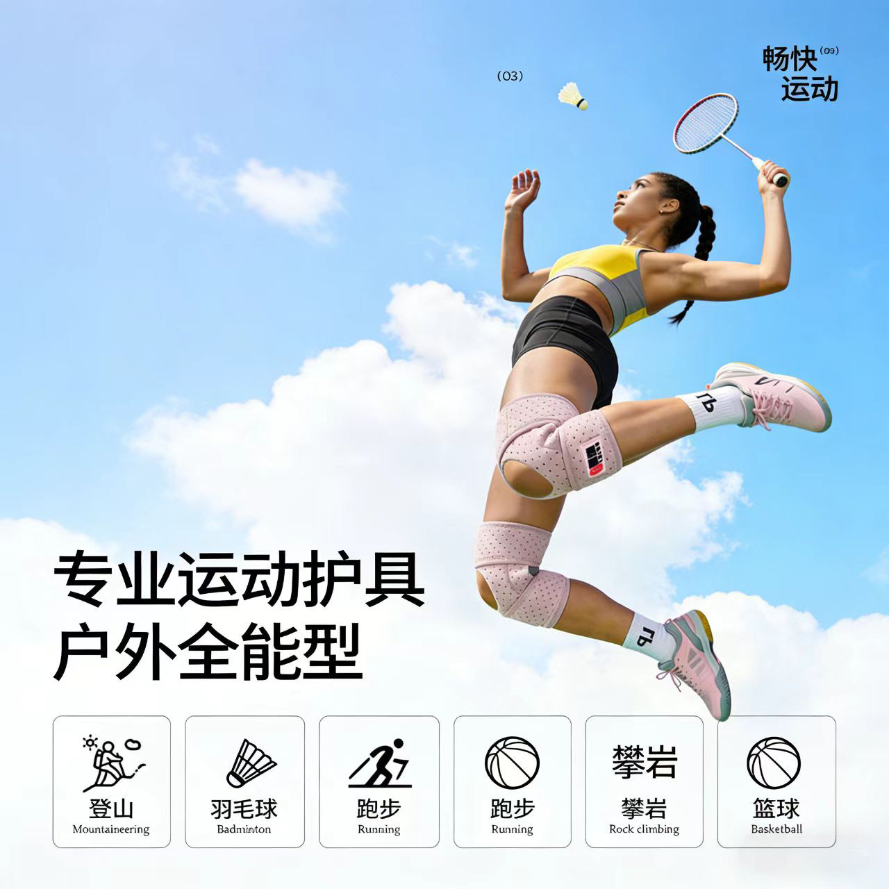📚 雷部专业强力支撑护膝运动护膝羽毛球开放式半月板膝盖护具