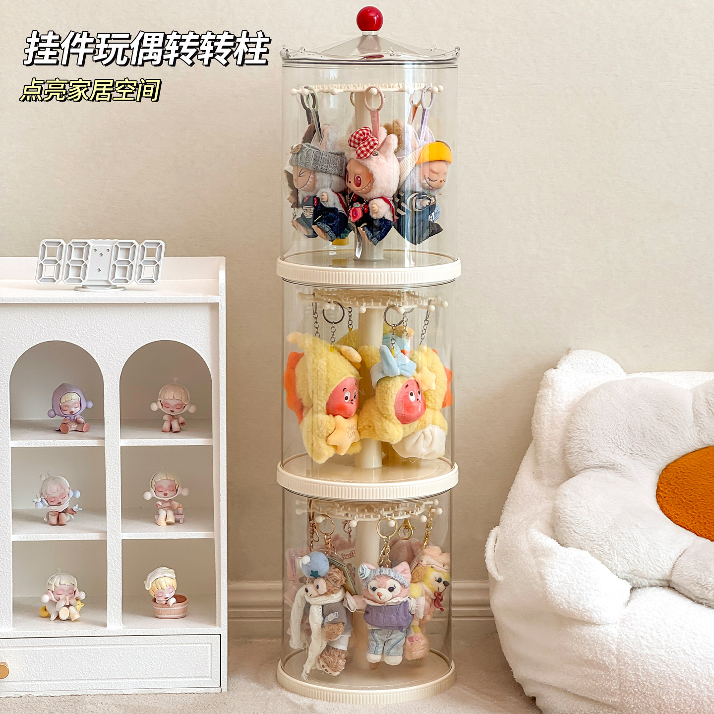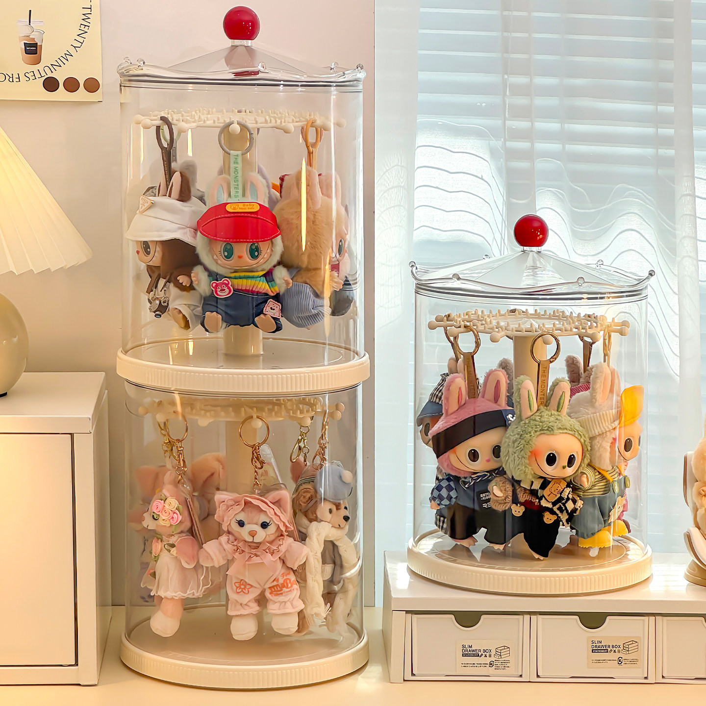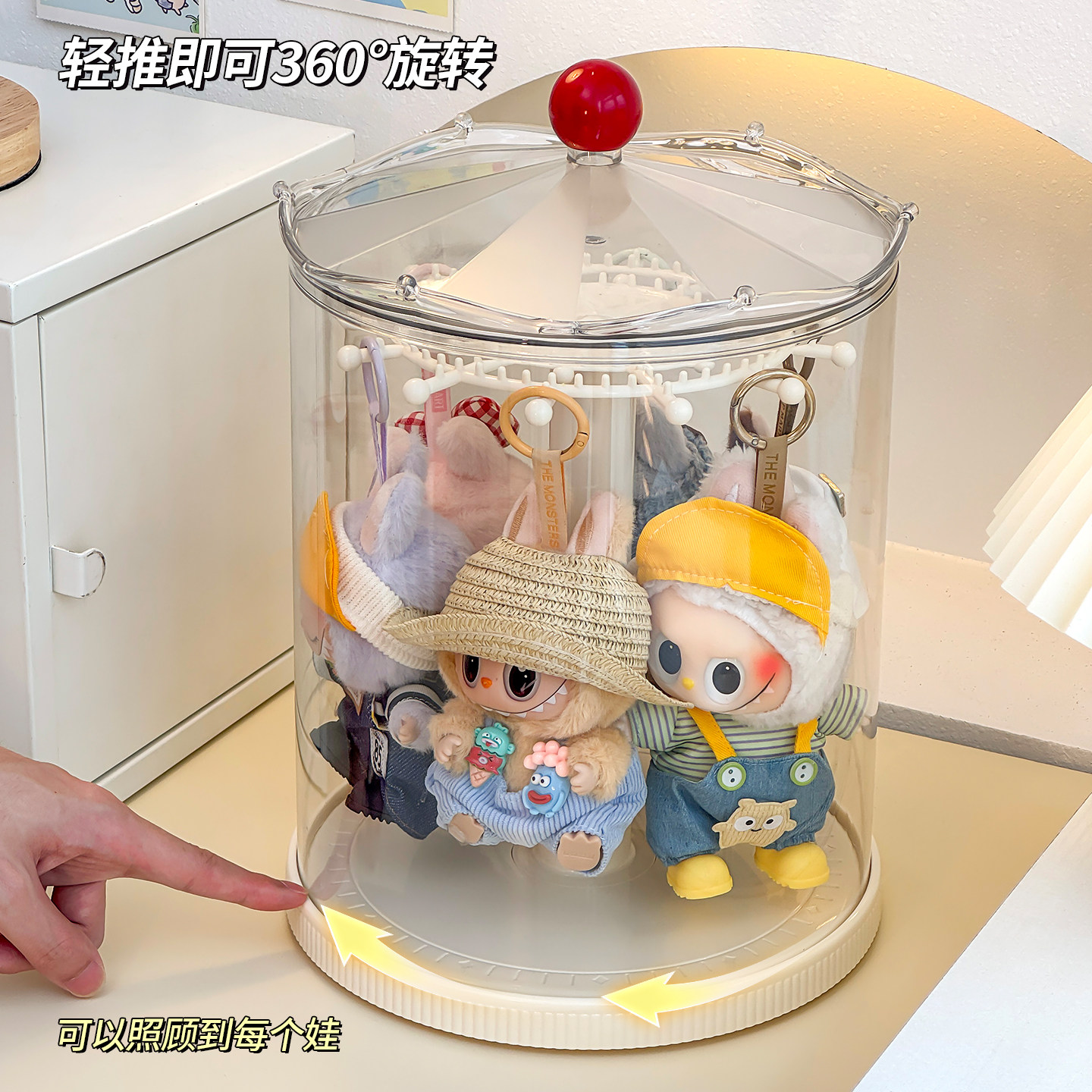 #labubu展示盒 #旋转拉布布挂件收纳盒 #透明防尘罩 #家居好物 #券后价39.9