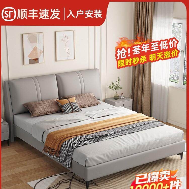 📚 实木床现代简约1米8双人床软包大主卧经济型租房床1用.2m单LNI出