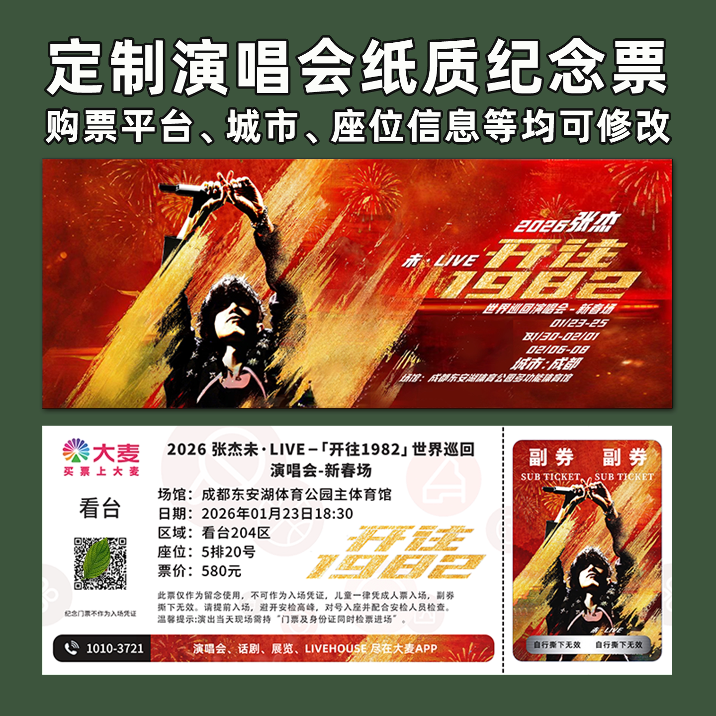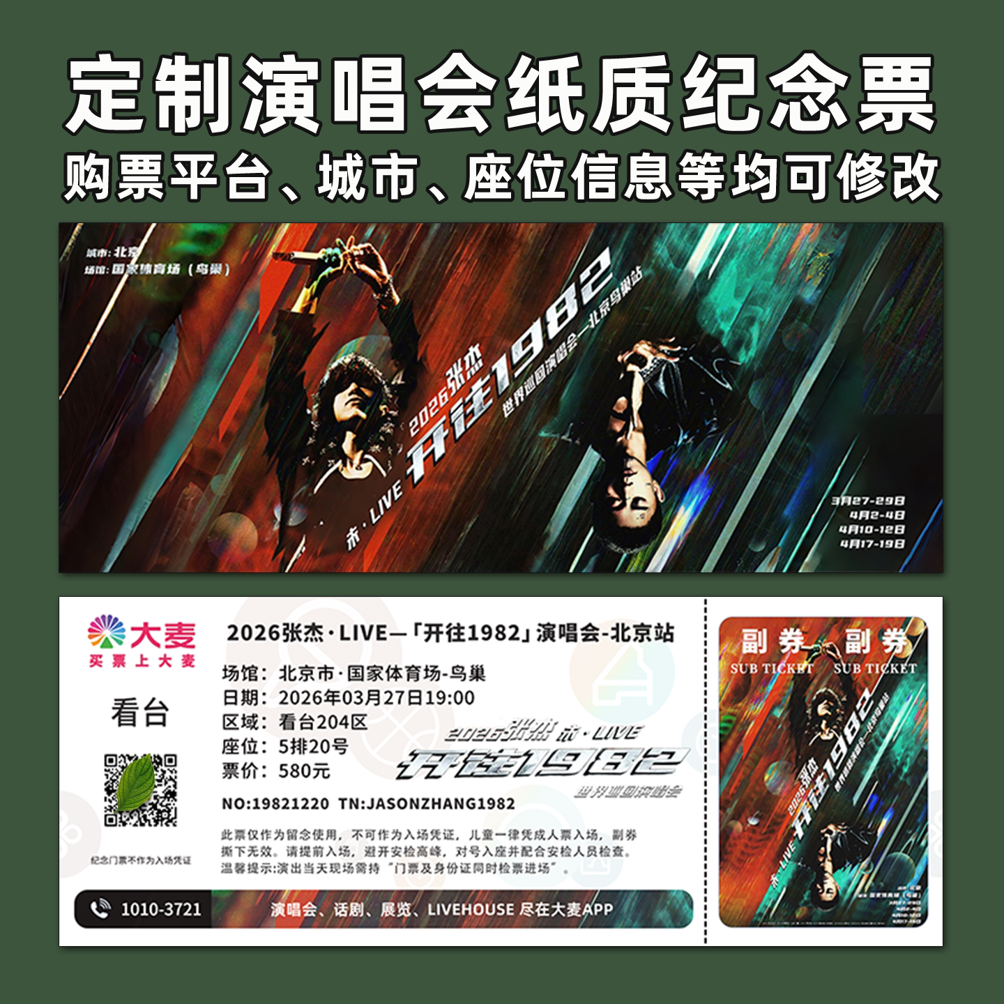📚 张杰1982跨年演唱会纸质门票打印纪念票根定制猫眼大麦北京鸟巢