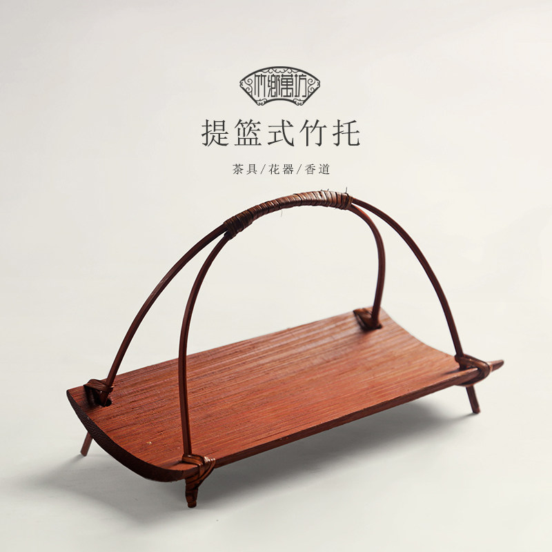 📚 竹制小提篮围炉煮茶配件零食碟 中式茶点盘茶巾托 收纳功夫茶具