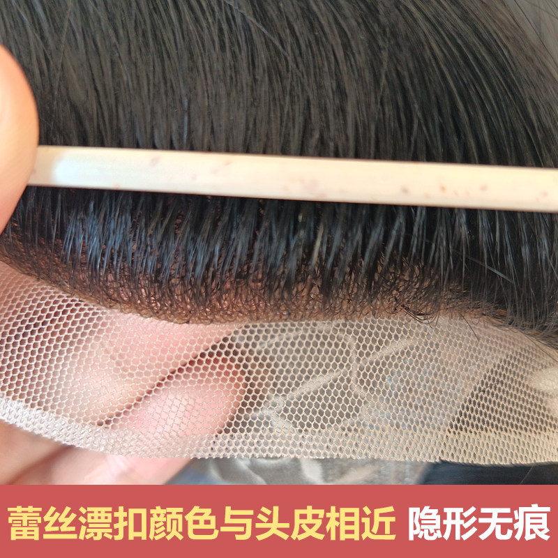 📚 新品男假发补发递针到边瑞士网前额漂扣隐形秃顶脱发透气真人辫发