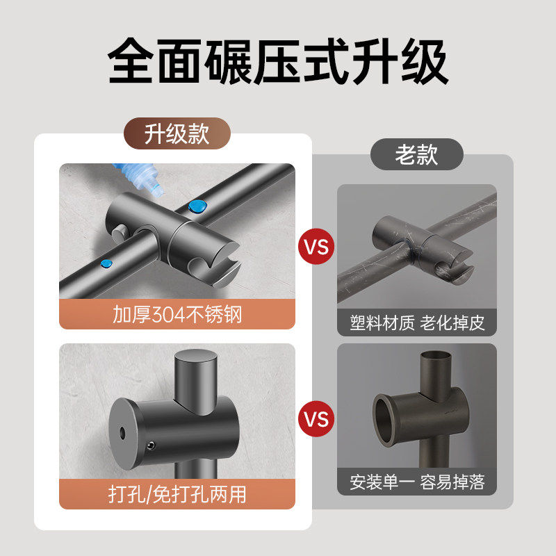 📚 免打孔花洒升降杆支架淋浴器配件浴室喷头可调节不锈钢固定杆
