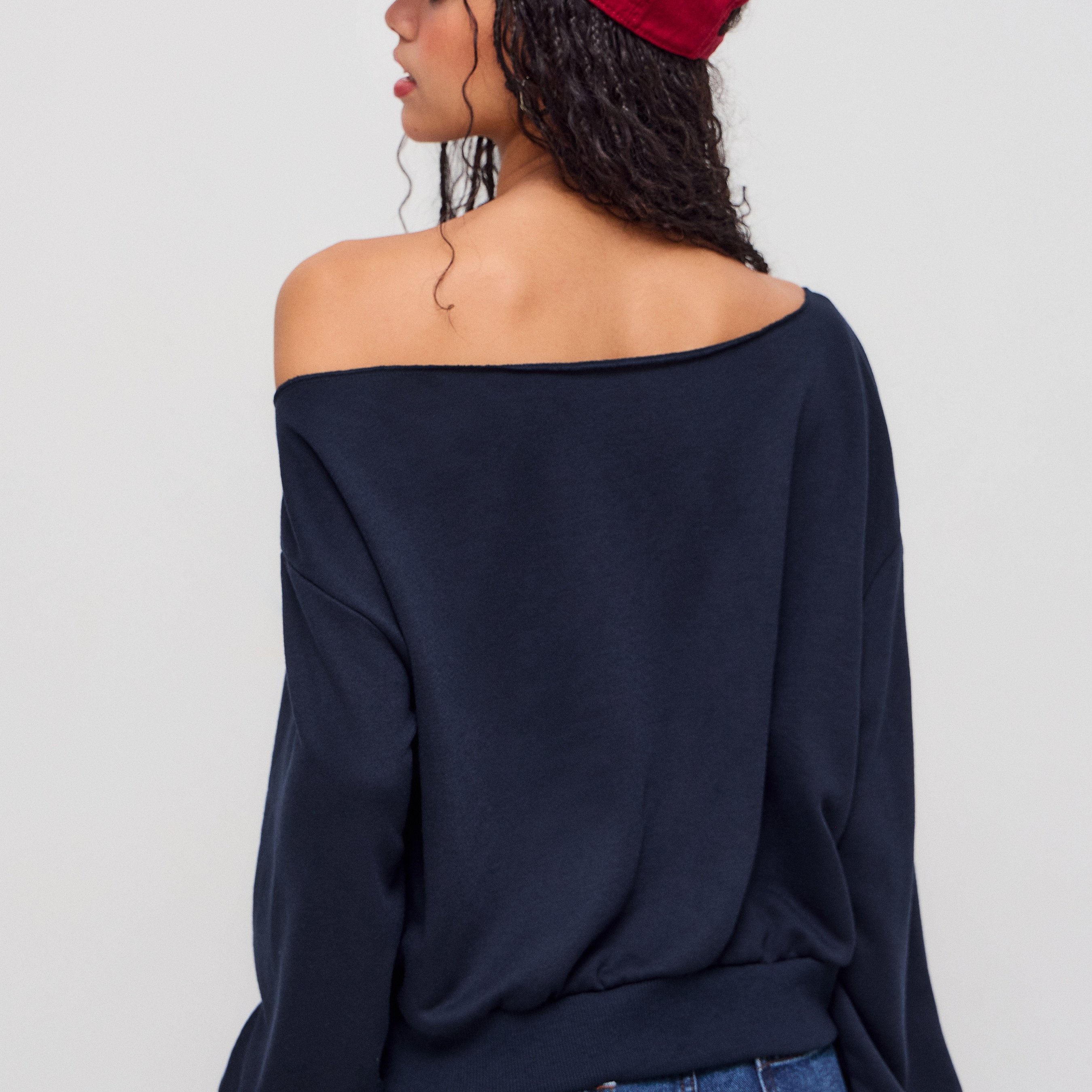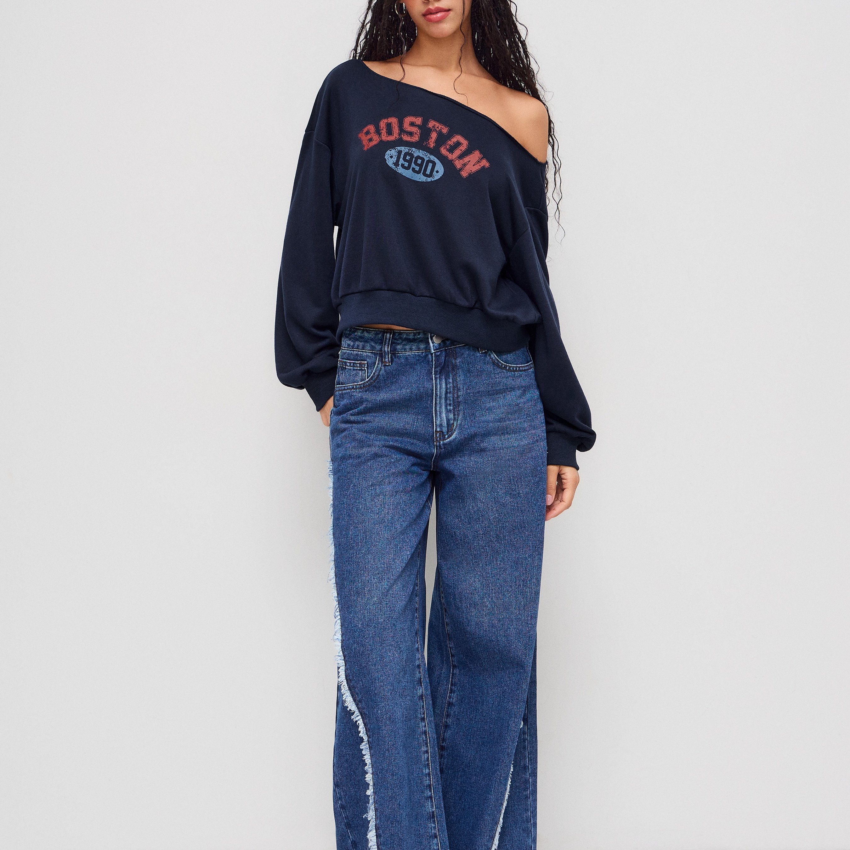 📚 CIDER 春秋女装新款波士顿1990印花不对称领宽松卫衣