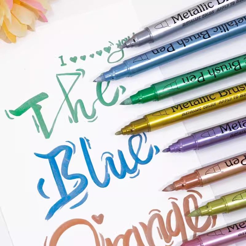 📚 广纳金银12色brush彩色金属油漆珠光笔软毛相册DIY火漆签名记号笔