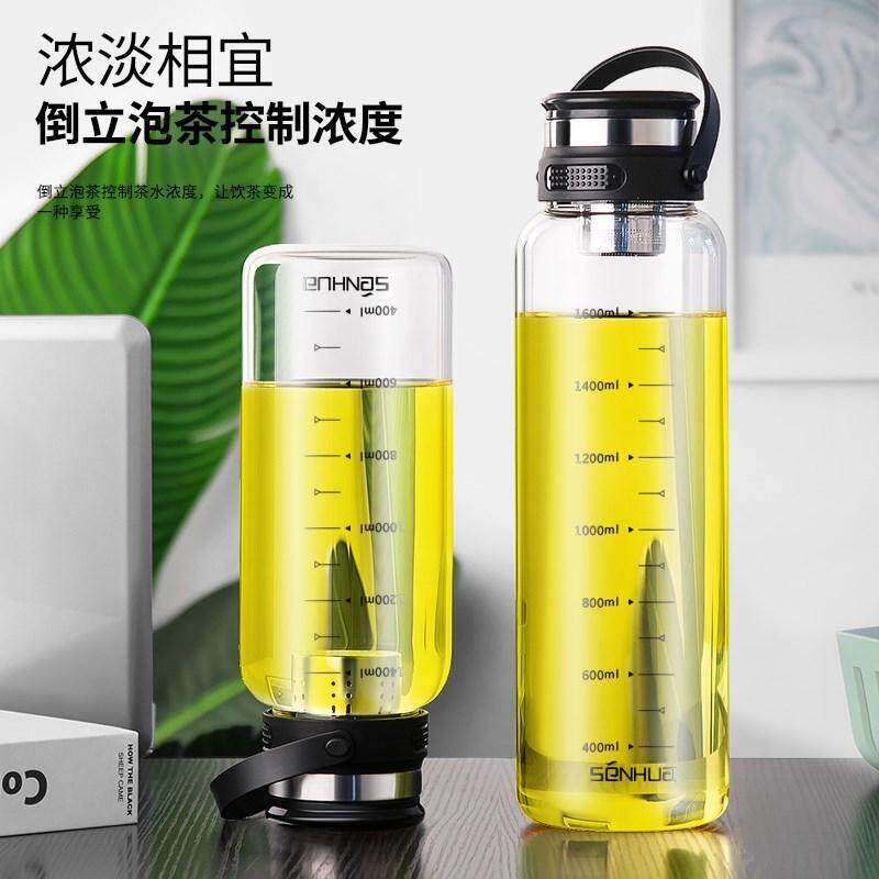 📚 2000ml大容量玻璃杯茶水分离杯子耐高温泡茶水杯带有刻度水瓶水壶