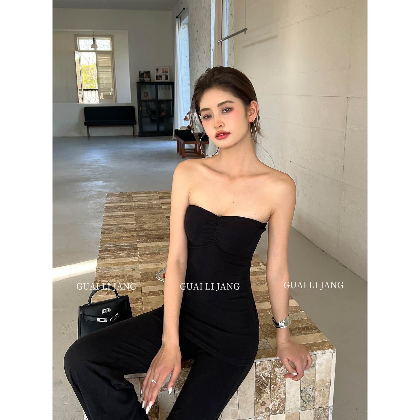 👀先说说这套套装的亮点。首先是那抹胸的设计,美式风格的设计让整个辣妹形象更加突出。其次,修身显瘦的设计让你无论是在什么场合都能轻松驾驭。露肩设计更是增添了一丝妩媚和优雅。再来说说它的垂感,穿上之后仿佛整个身体都被包裹在柔软的针织之中,真的是修身显瘦的绝佳选择。