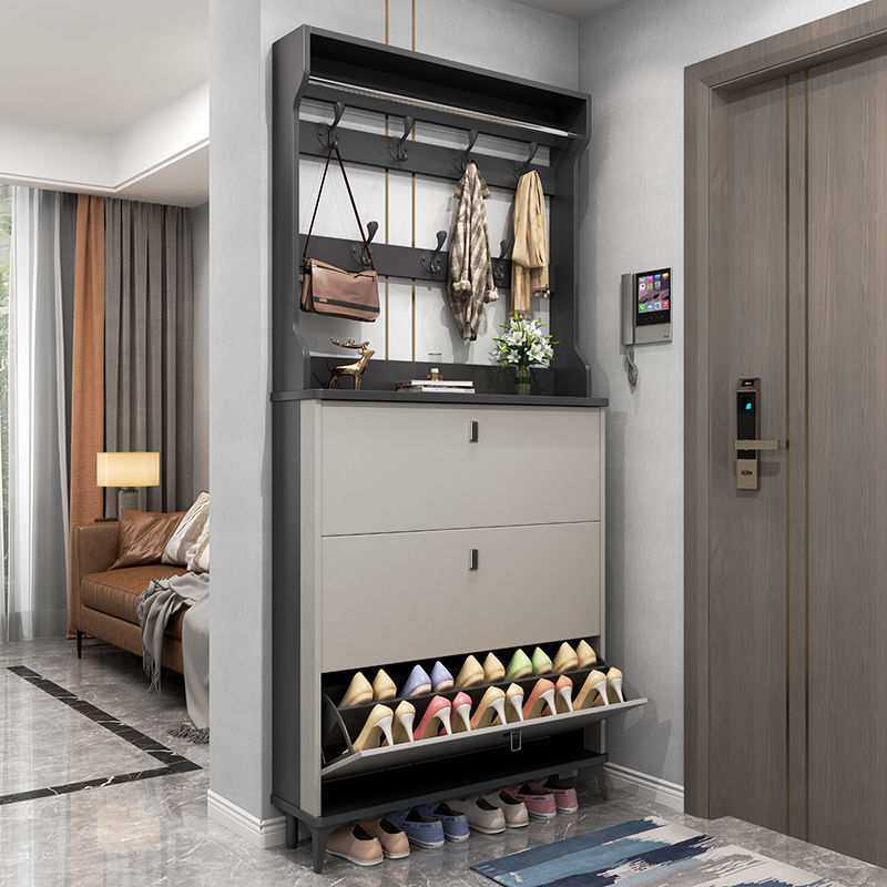 📚 超薄鞋柜门口进门靠墙鞋架翻斗式玄关柜子多功能多层挂衣帽架一体