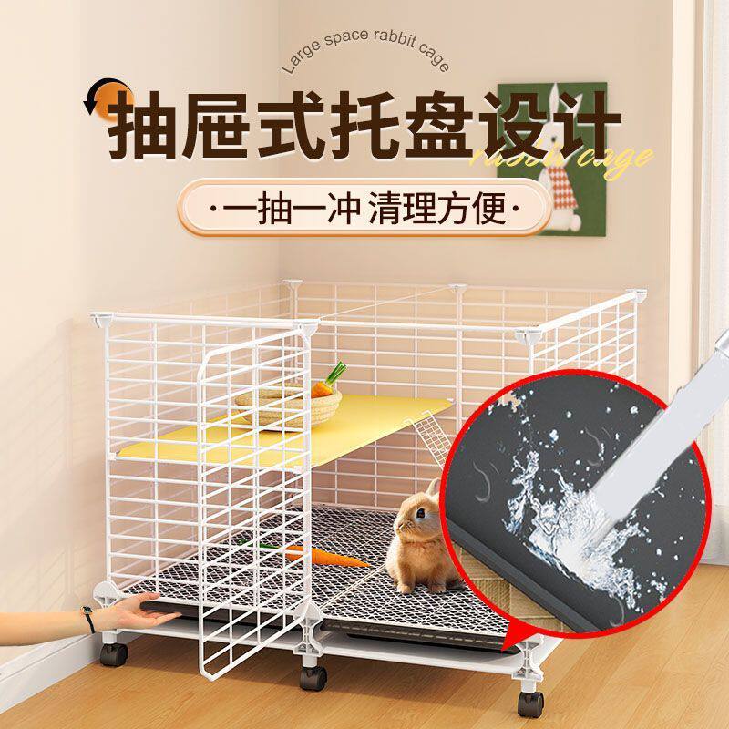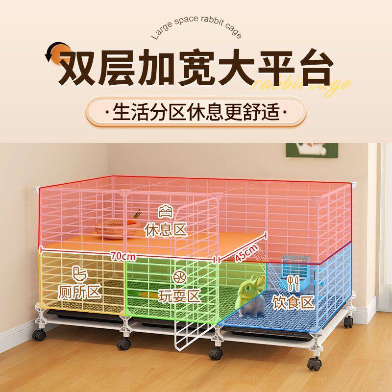 📚 兔子笼子双层家用超大号自动清粪荷兰猪侏儒兔笼室内专用二层平台