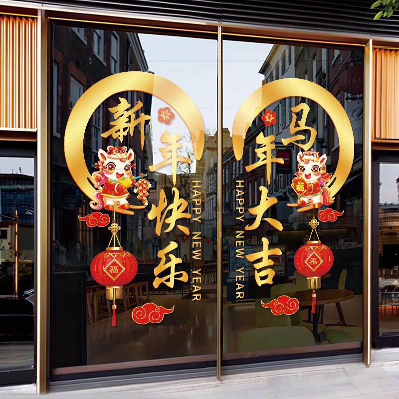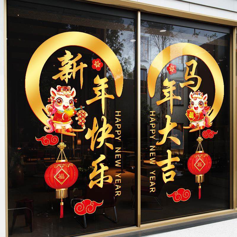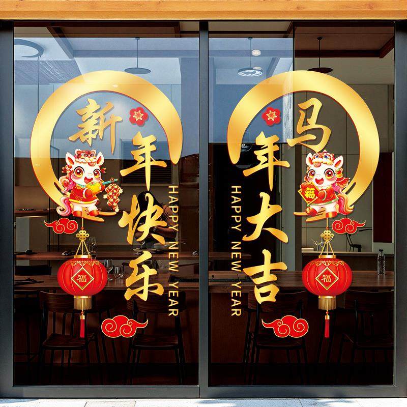 #新年氛围布置 #马年快乐 #商铺饭店装饰 #春节场景 #静电贴纸 #券后价16
