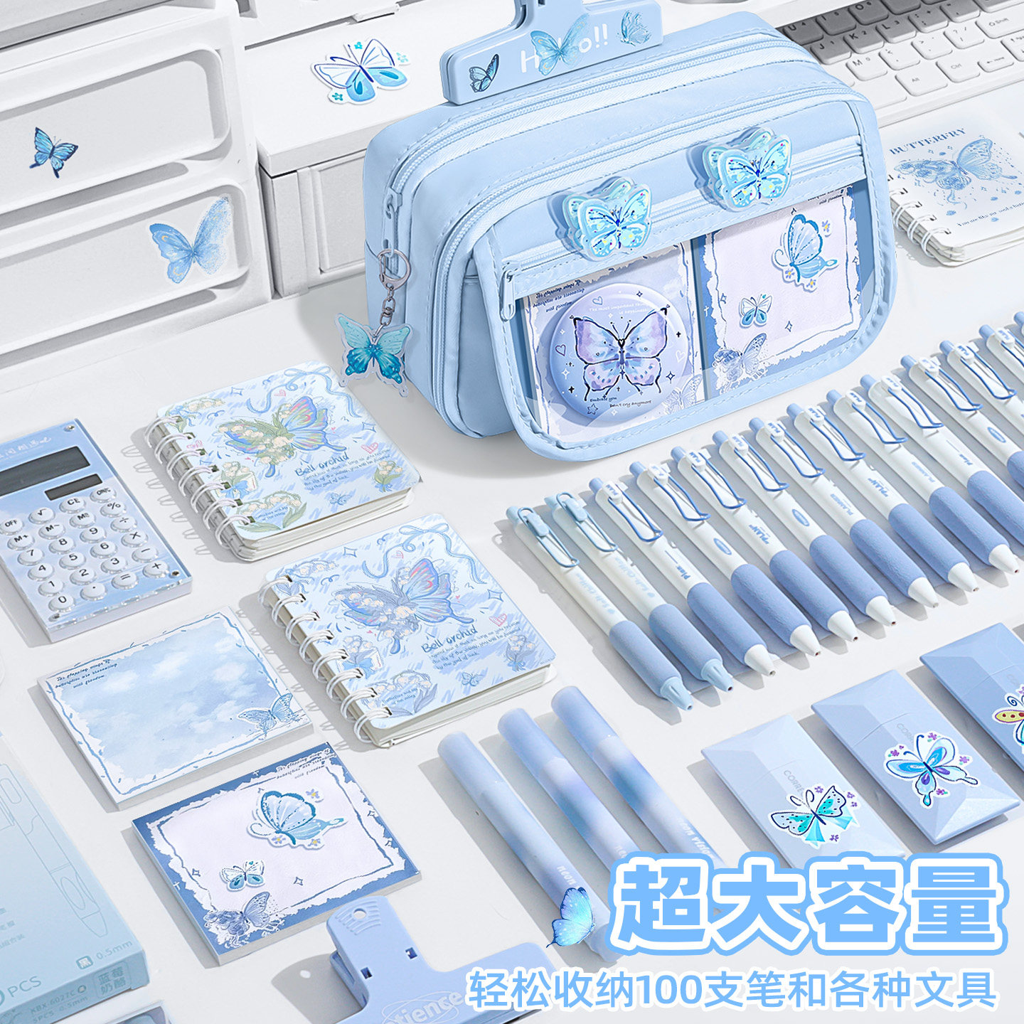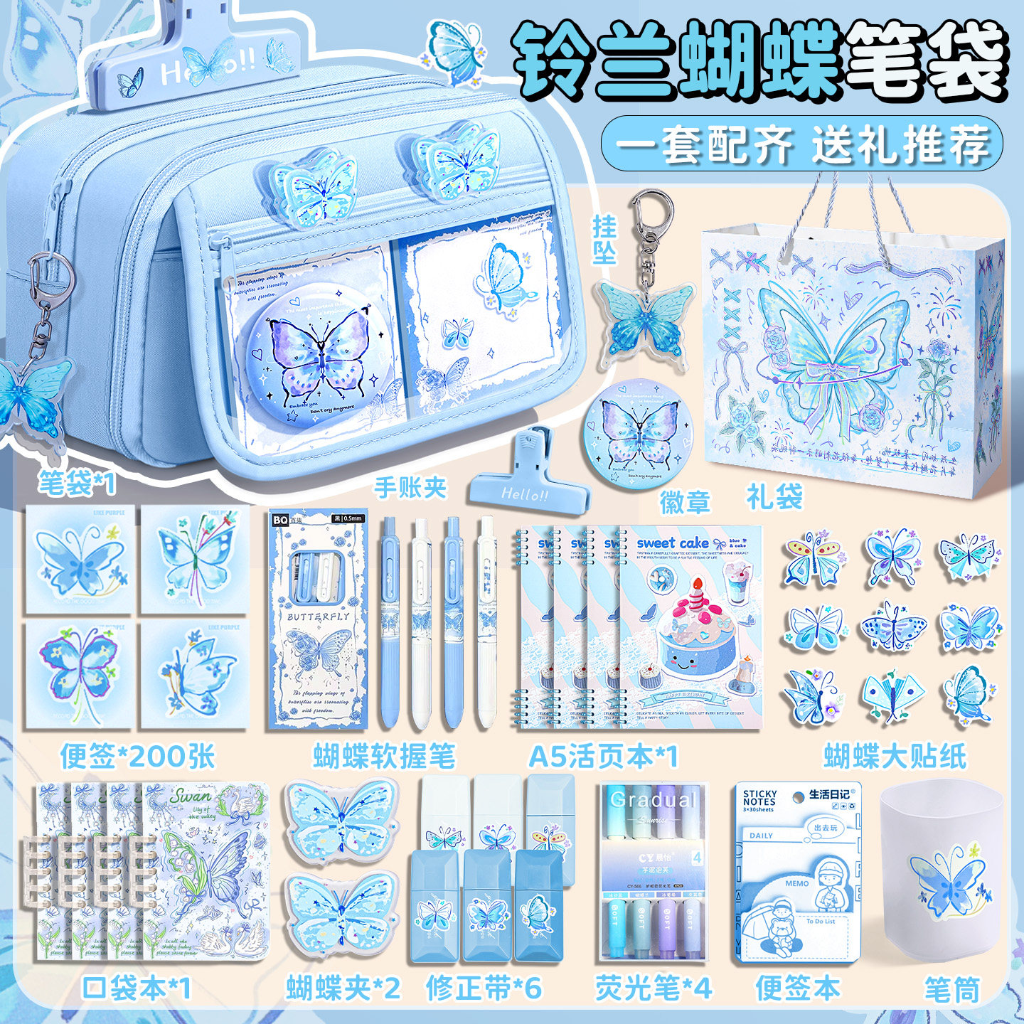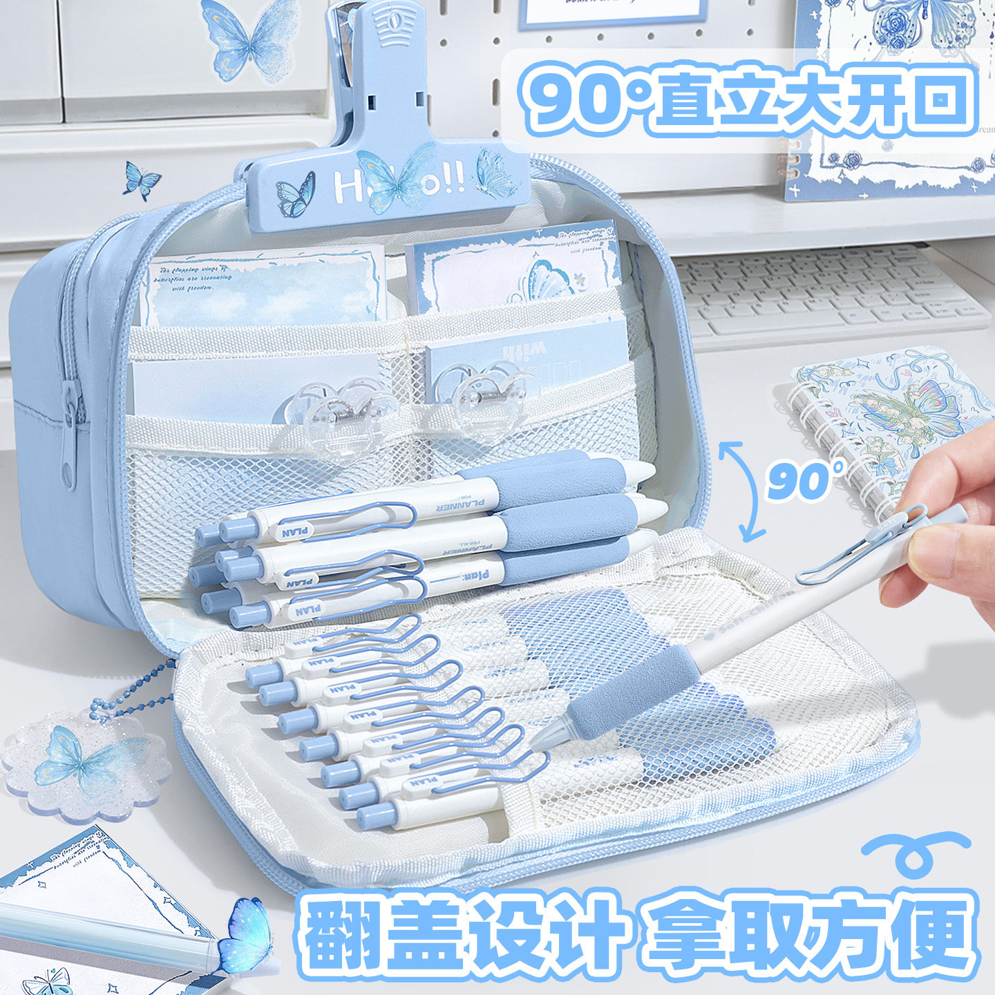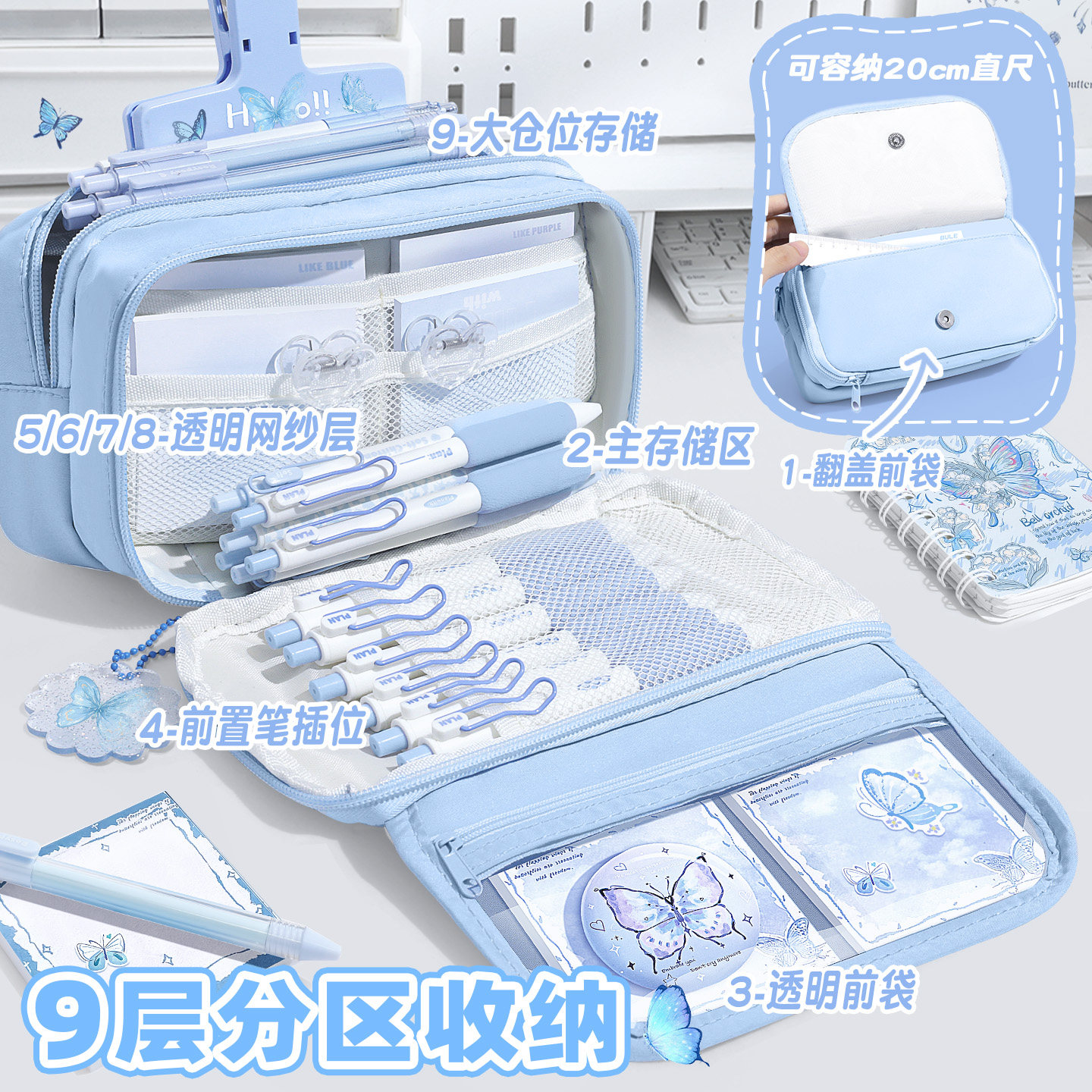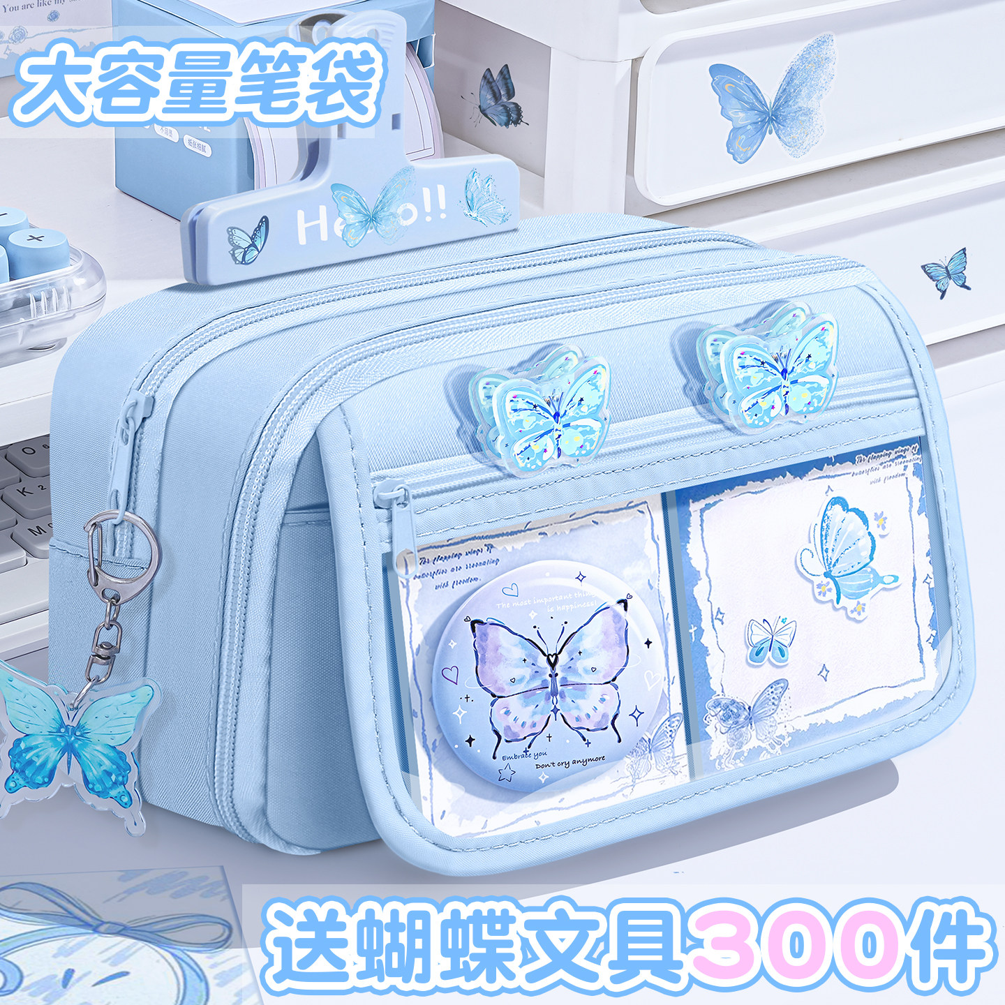 📚 铃兰蝴蝶~大容量笔袋高颜值ins女生2026新款文具盒女孩款小学生蓝色铅笔盒透明小众不撞款2025初中女生文具袋