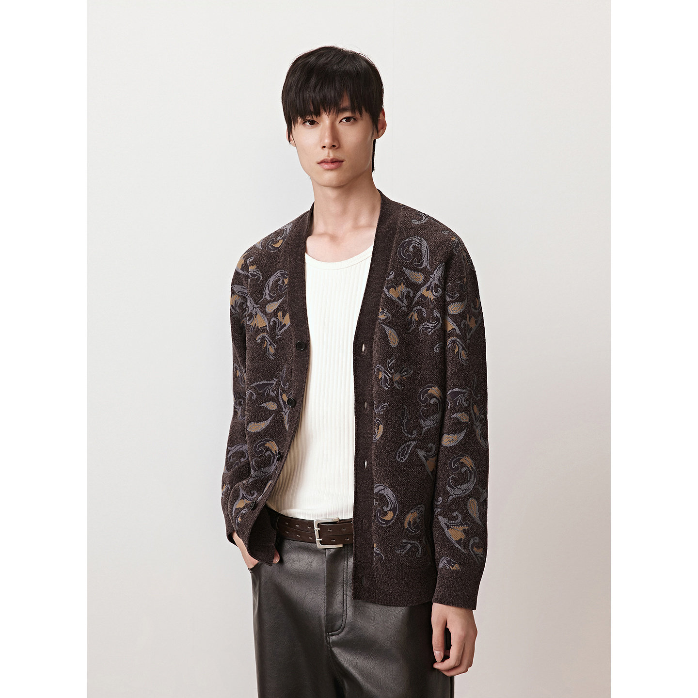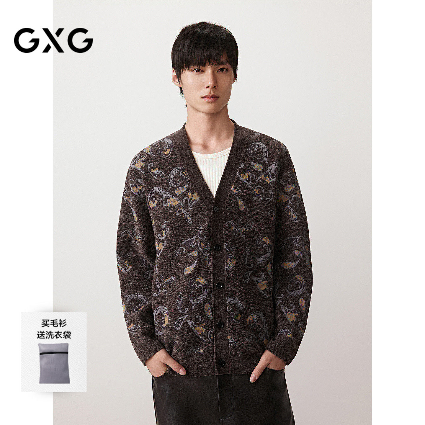📚 GXG男装 雪尼尔开衫满印腰果花外套通勤男开襟毛衣 2025秋季新品