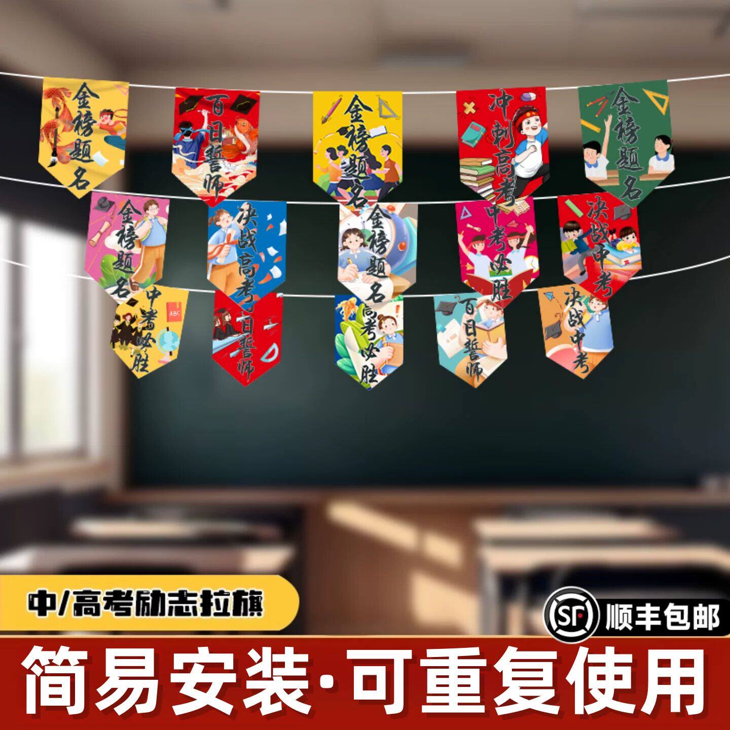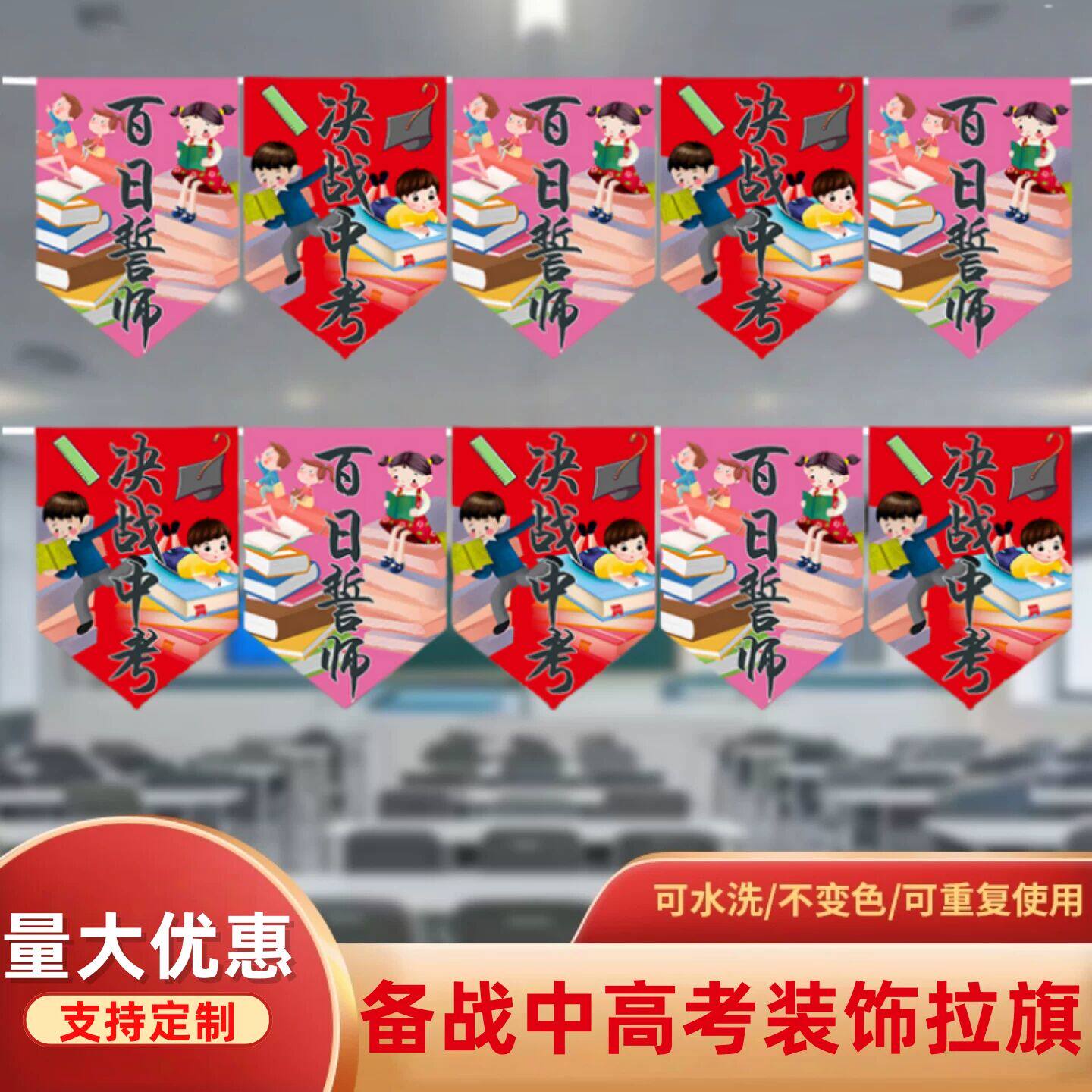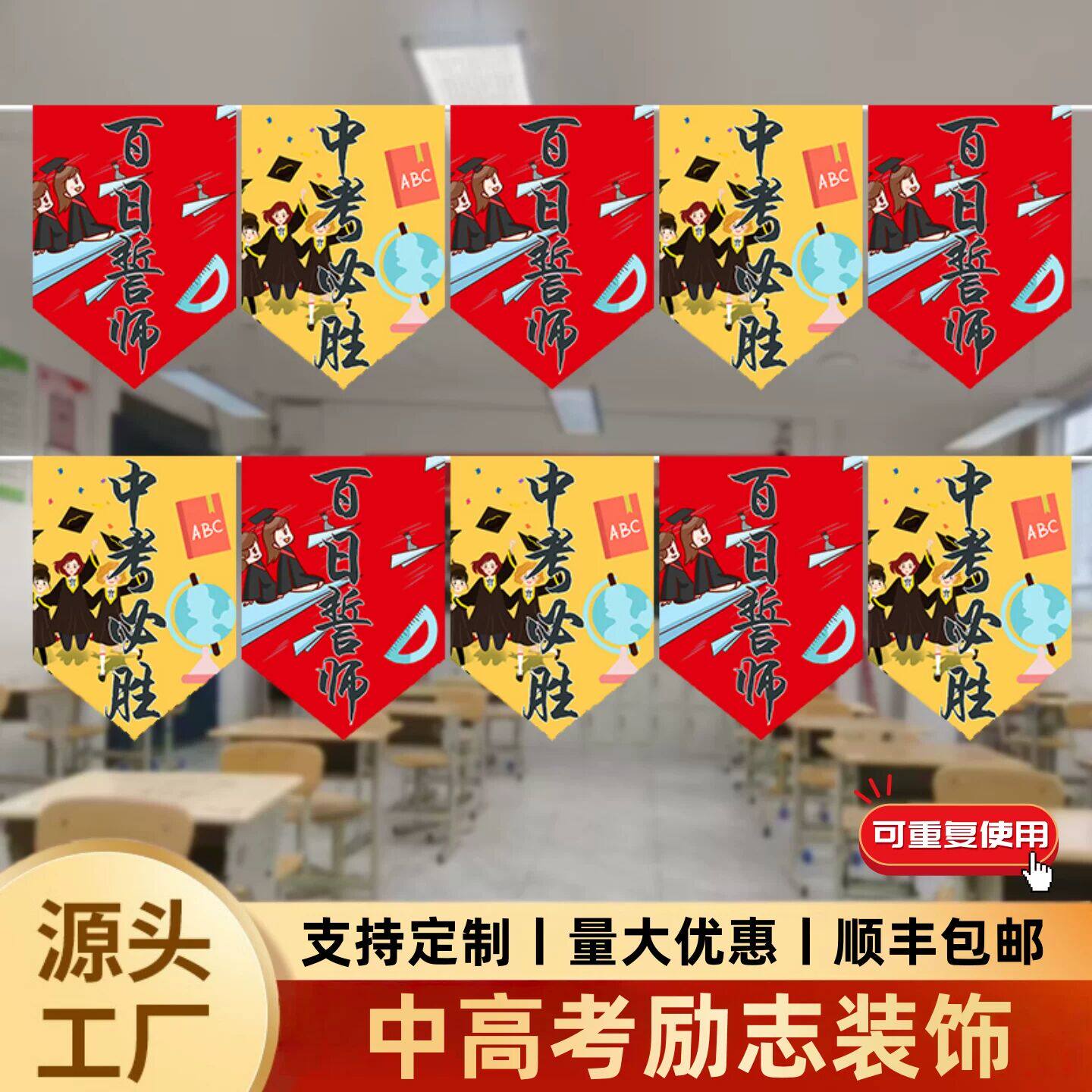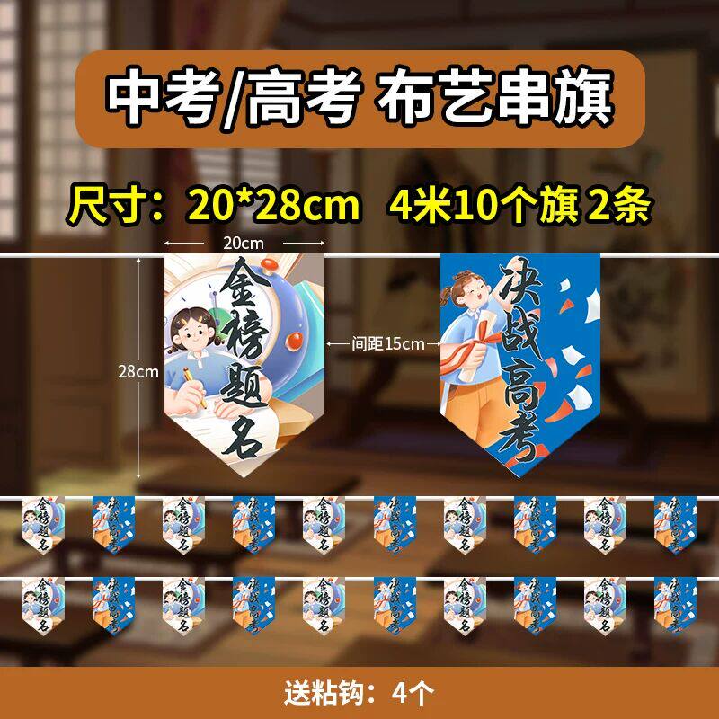 📚 高考百日誓师活动教室布置装饰金榜题名挂件国风彩色布艺挂旗定制