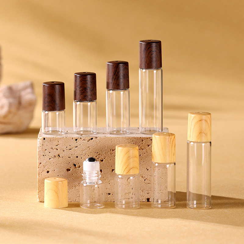 📚 滚珠分装瓶木纹玻璃便携旅行小巧分装1-5ml香水精油上药器空瓶