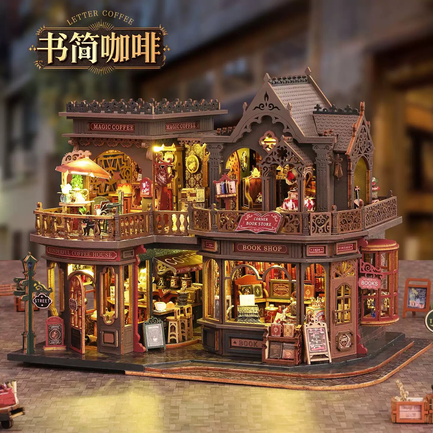 📚 diy小屋 书简咖啡 手工拼装模型 锻炼耐心和毅力 亲子玩具房 益智