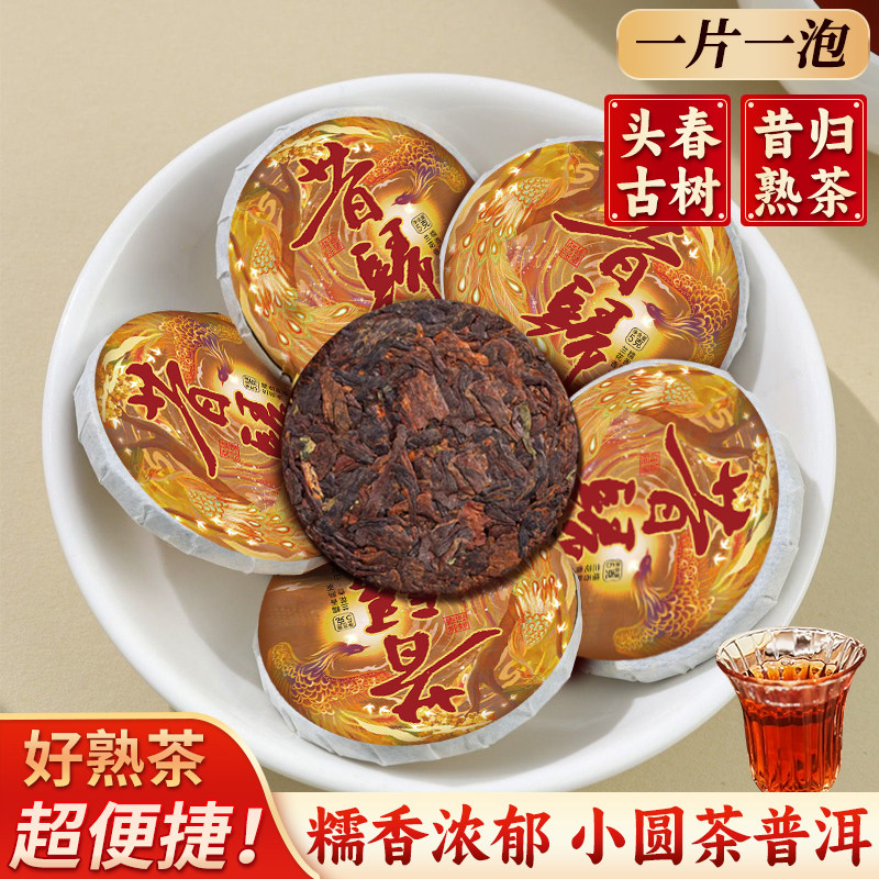 📚 昔归糯香熟茶冰岛古树普洱茶球形小玉饼28g袋装