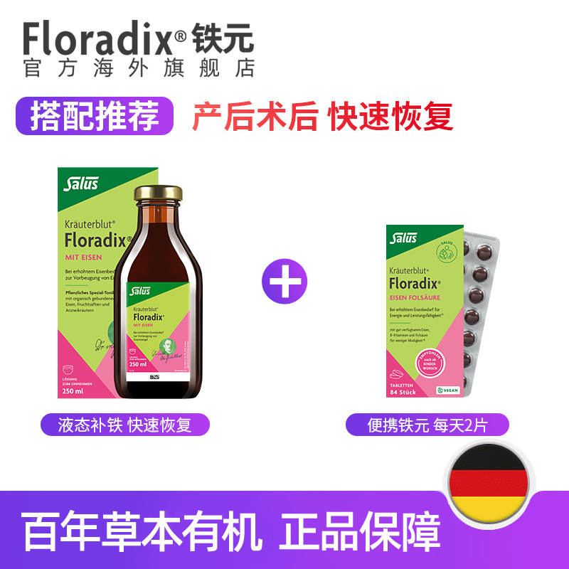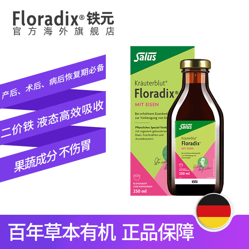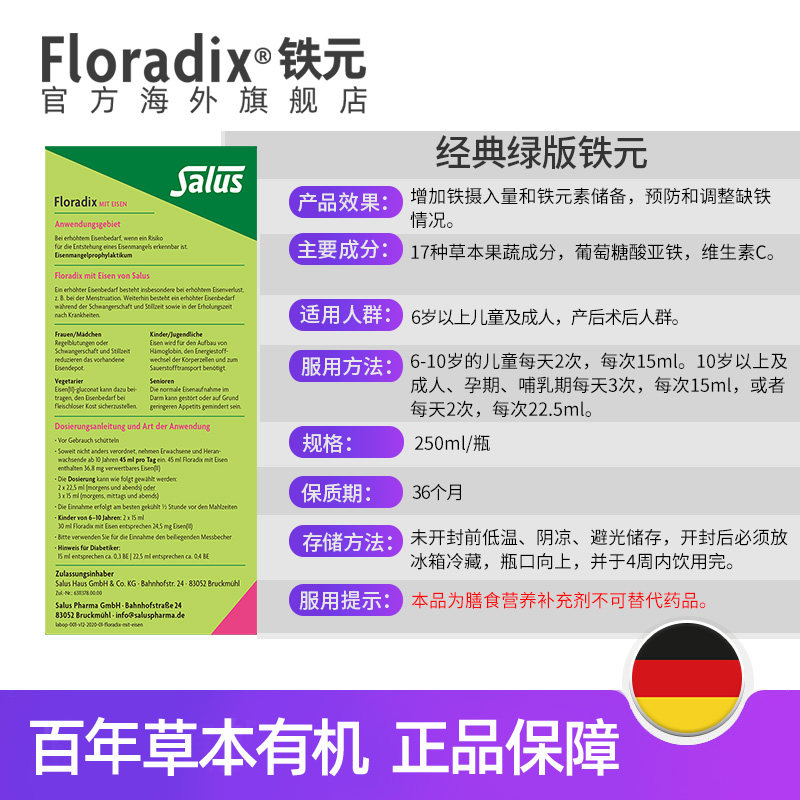 📚 Floradix 德国绿版铁元补铁剂调气养血术后食品营养品250ml*2