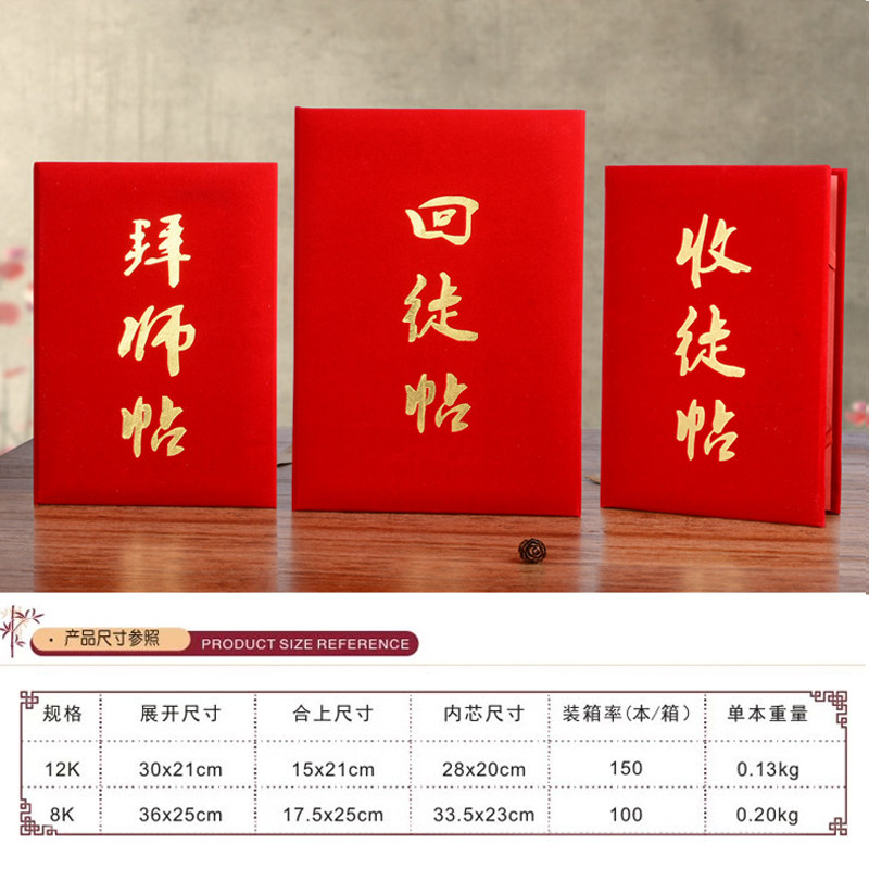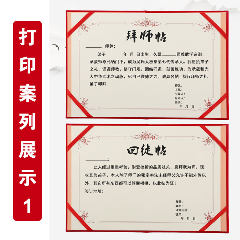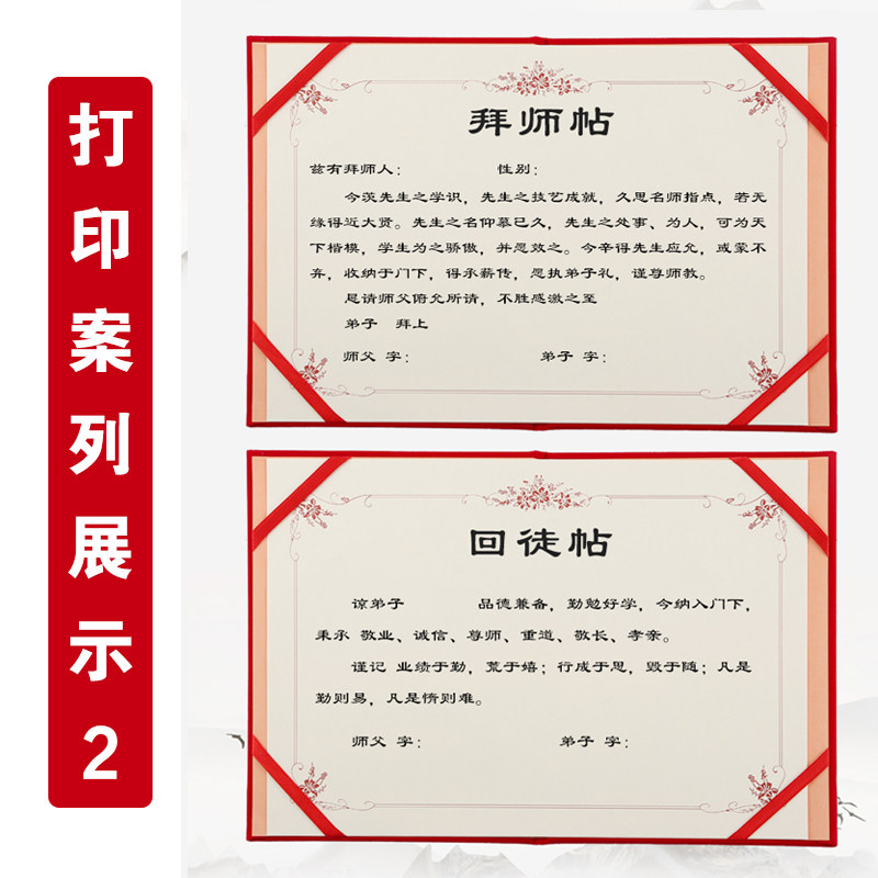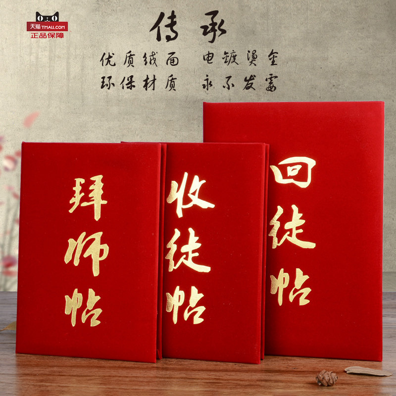 📚 高档绒面拜师帖回徒帖收徒贴红色烫金证书定做外壳红色a4奖状框12K8K英雄贴拜师仪式贴内芯内页打印封面定制