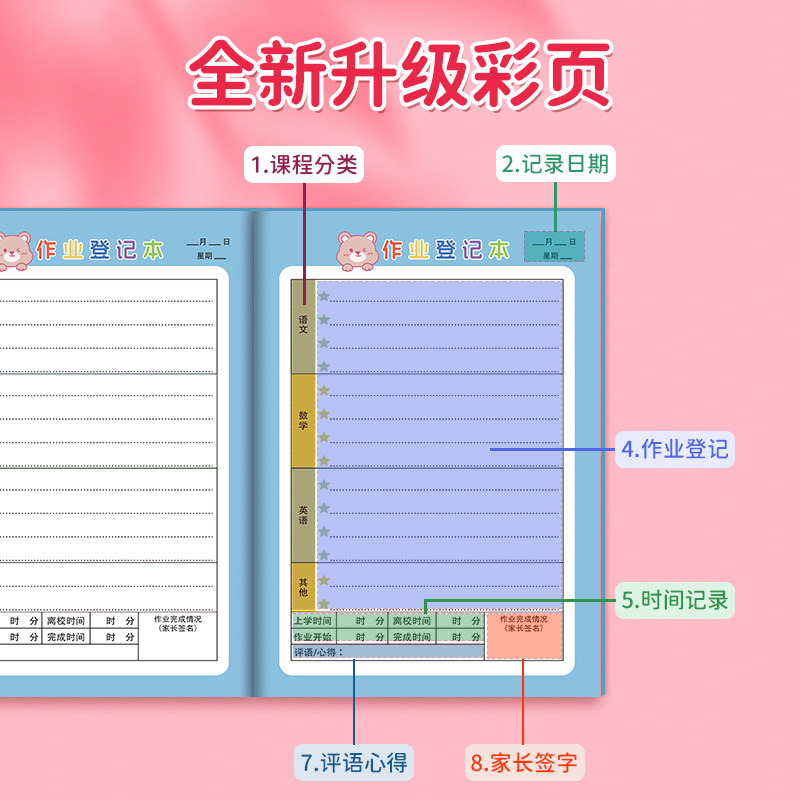 📚 一二三四五年级作业登记本小学生专用抄记作业本小号儿童卡通可爱抄写本课堂家庭作业登记记录本小本子家校本