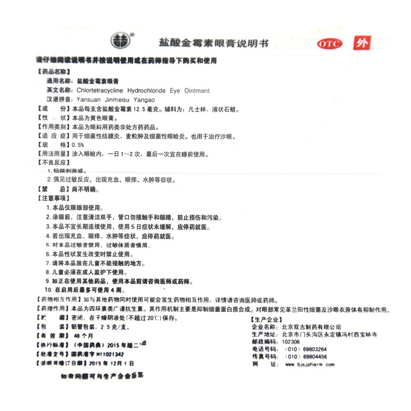 📚 双吉盐酸金霉素眼膏2.5g细菌性结膜炎眼睑炎沙眼发炎眼药
