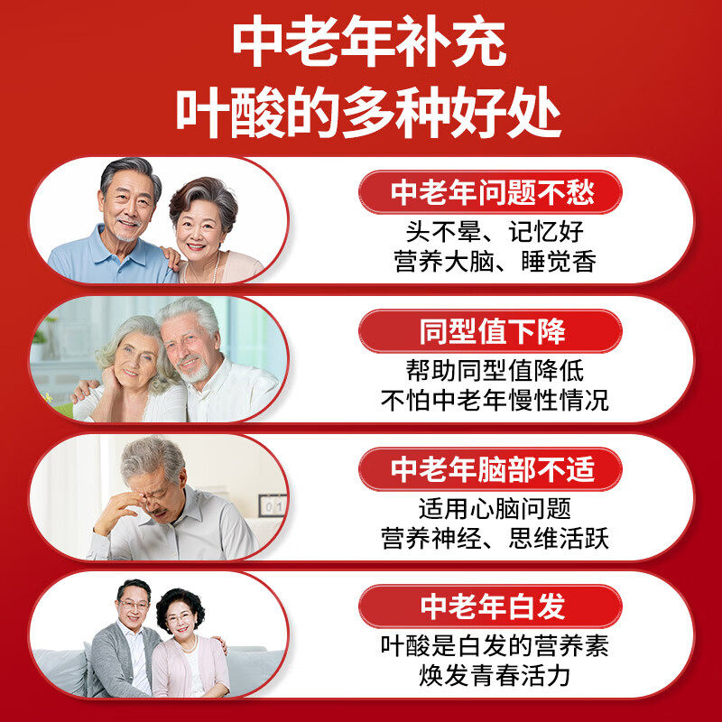 📚 【180片有效降酮】斯利安中老年叶酸片维生素b12中老年适用90片