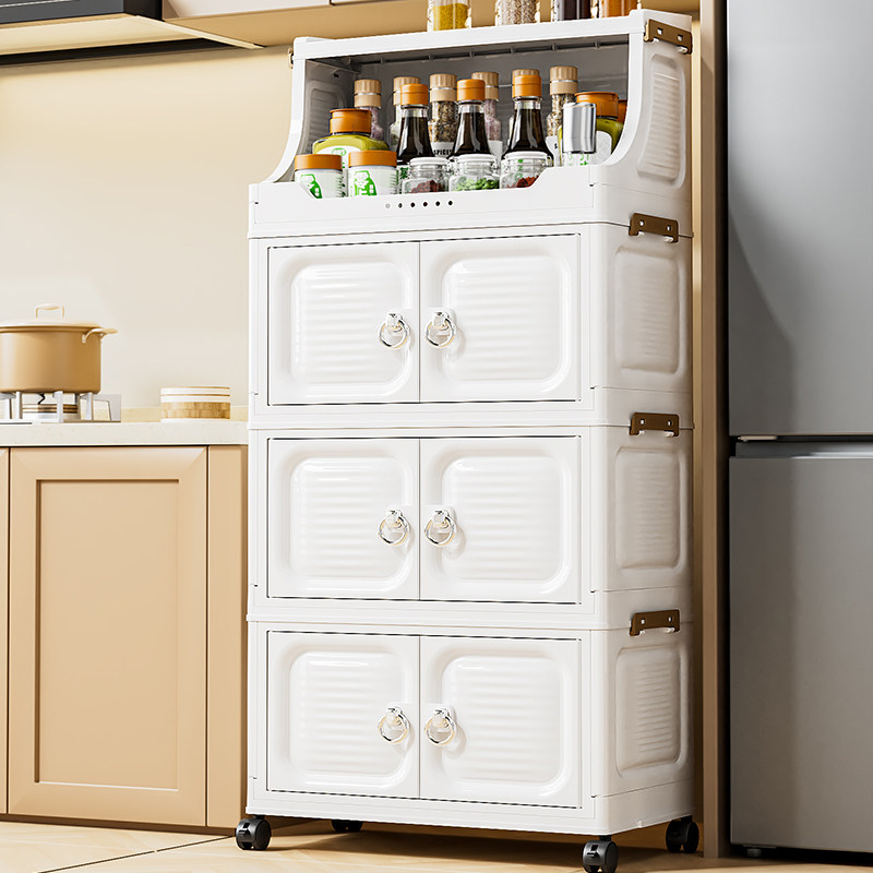 📚 双开门带轮可移动多层折叠免安装收纳柜防尘厨房置物架收纳架书架