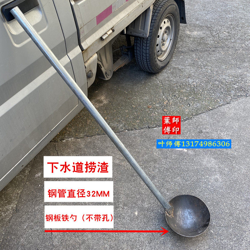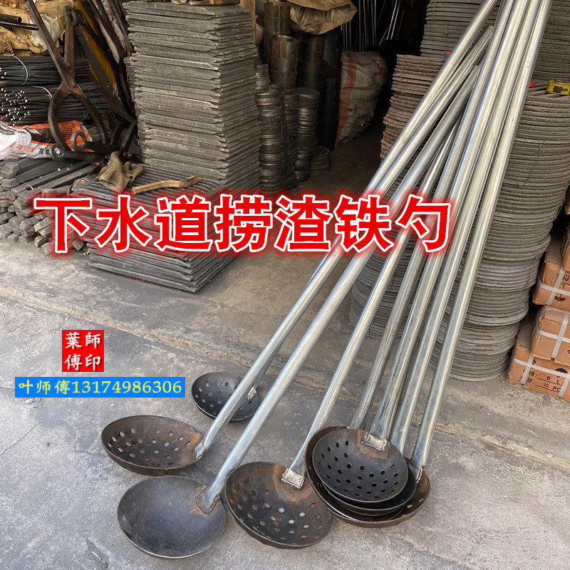 📚 加厚钢板漏勺 大铁勺1.2米长柄捞渣勺笊篱下水道淤泥掏粪挖洞勺子