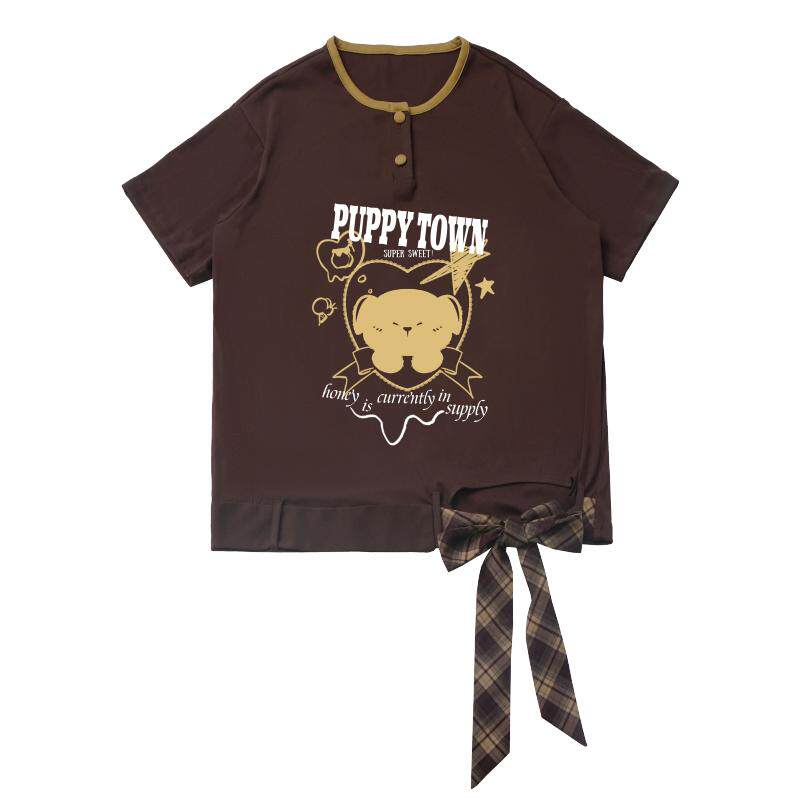 📚 pinksavior【黄油可可】咖色系活力可爱小狗夏日格纹拼接叠穿套装