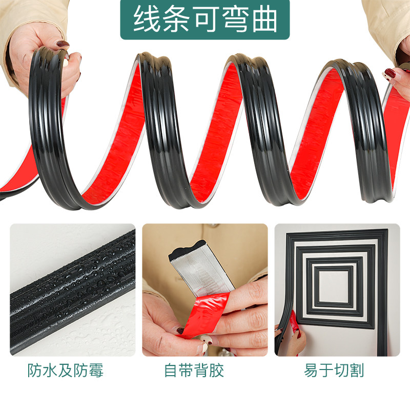 📚 pvc软线条法式黑色装饰条自粘电视背景墙边框造型仿石膏线装饰条