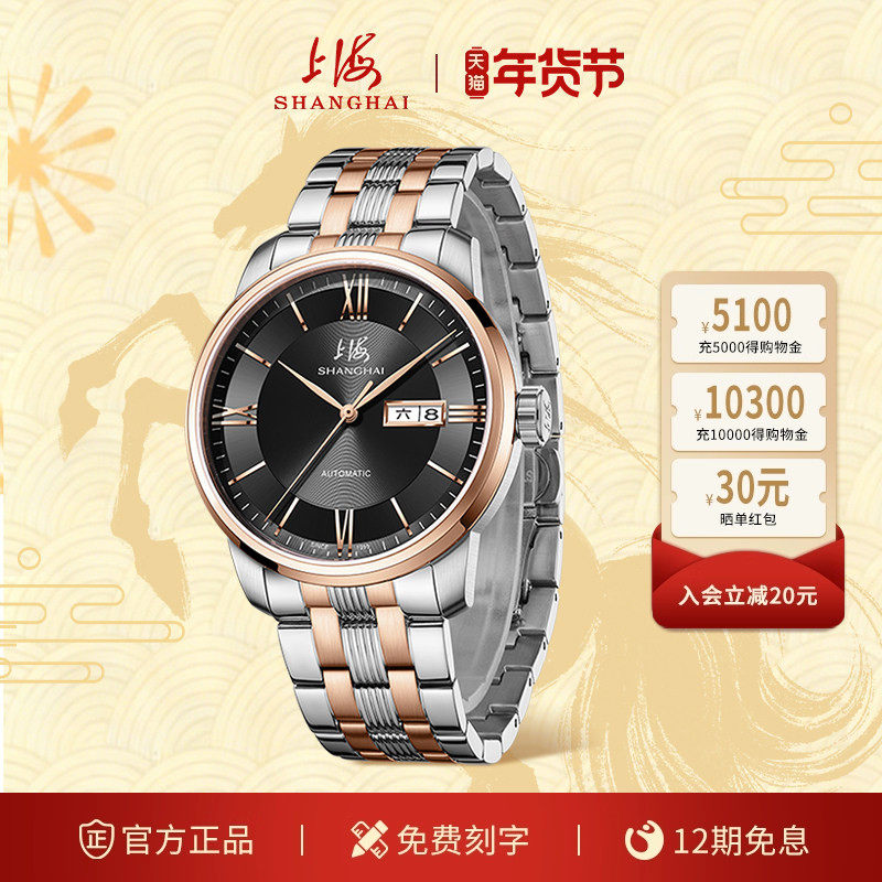 📚 上海牌手表全自动机械表防水休闲腕表商务国产男表官方正品3023