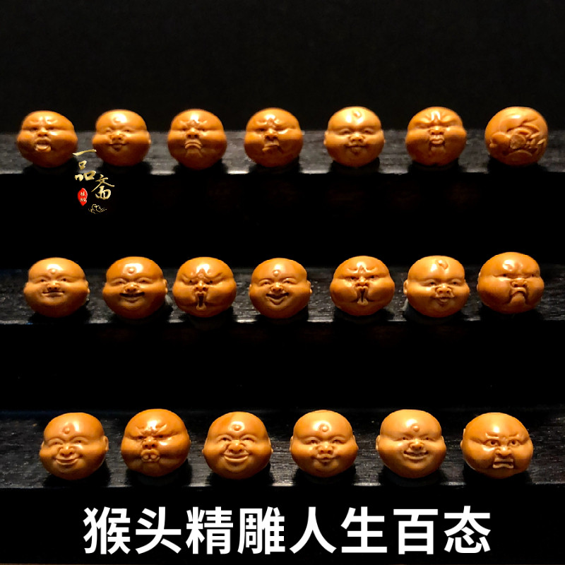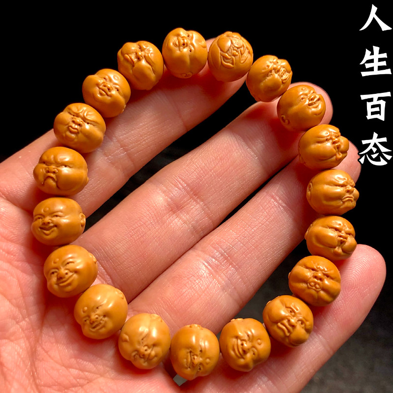 📚 人生百态精品猴头手串高端男士手链男款高级感桃核精雕刻橄榄核雕