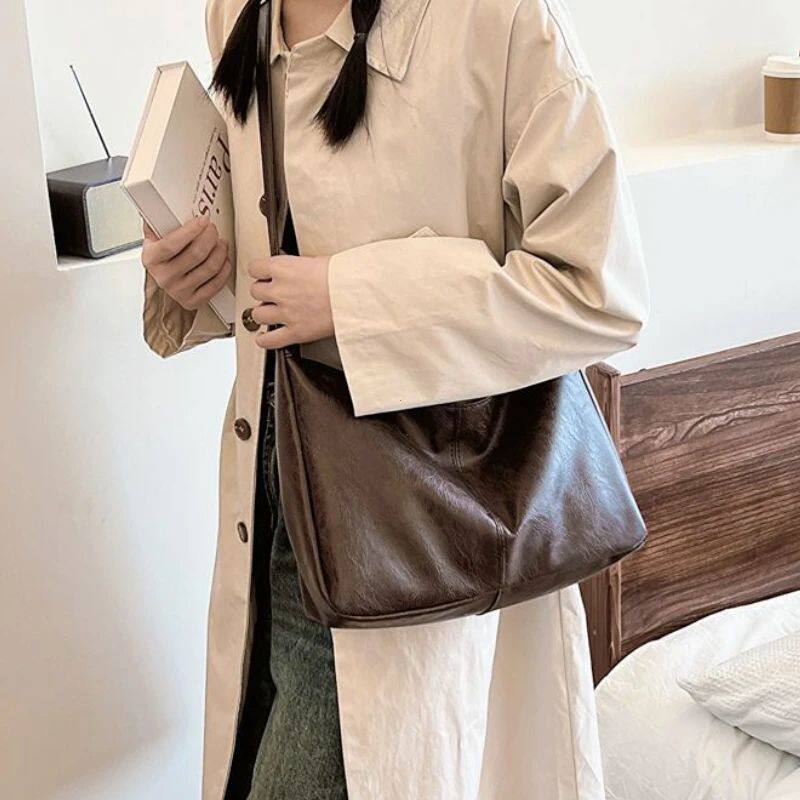 📚 PU Leather Commuter Fashion Vintage Casual Tote Bag Maillard