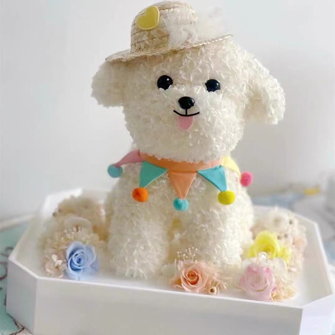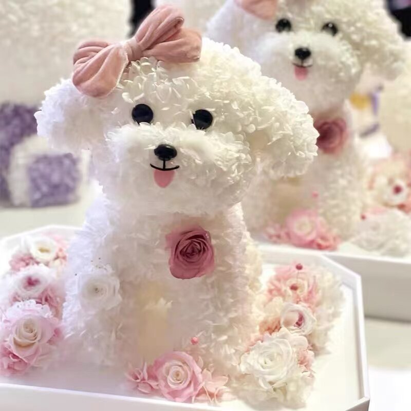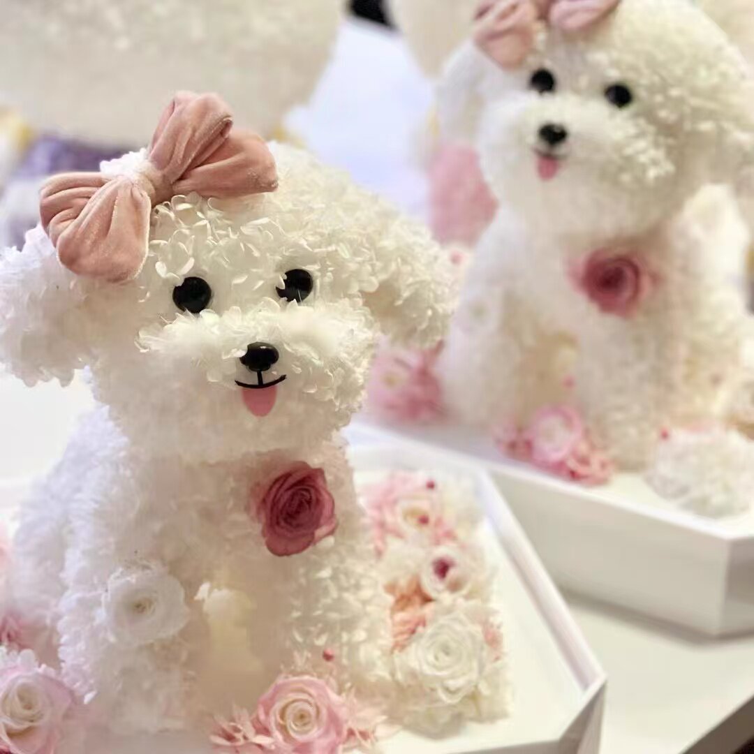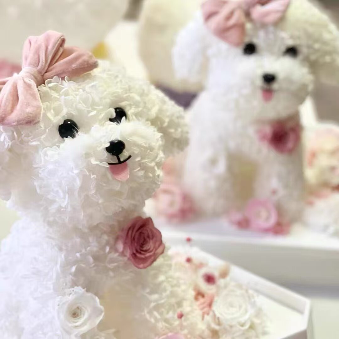 📚 新品永生花马尔济斯狗狗泰迪造型萌宠小狗款亚克力礼盒送朋友礼物