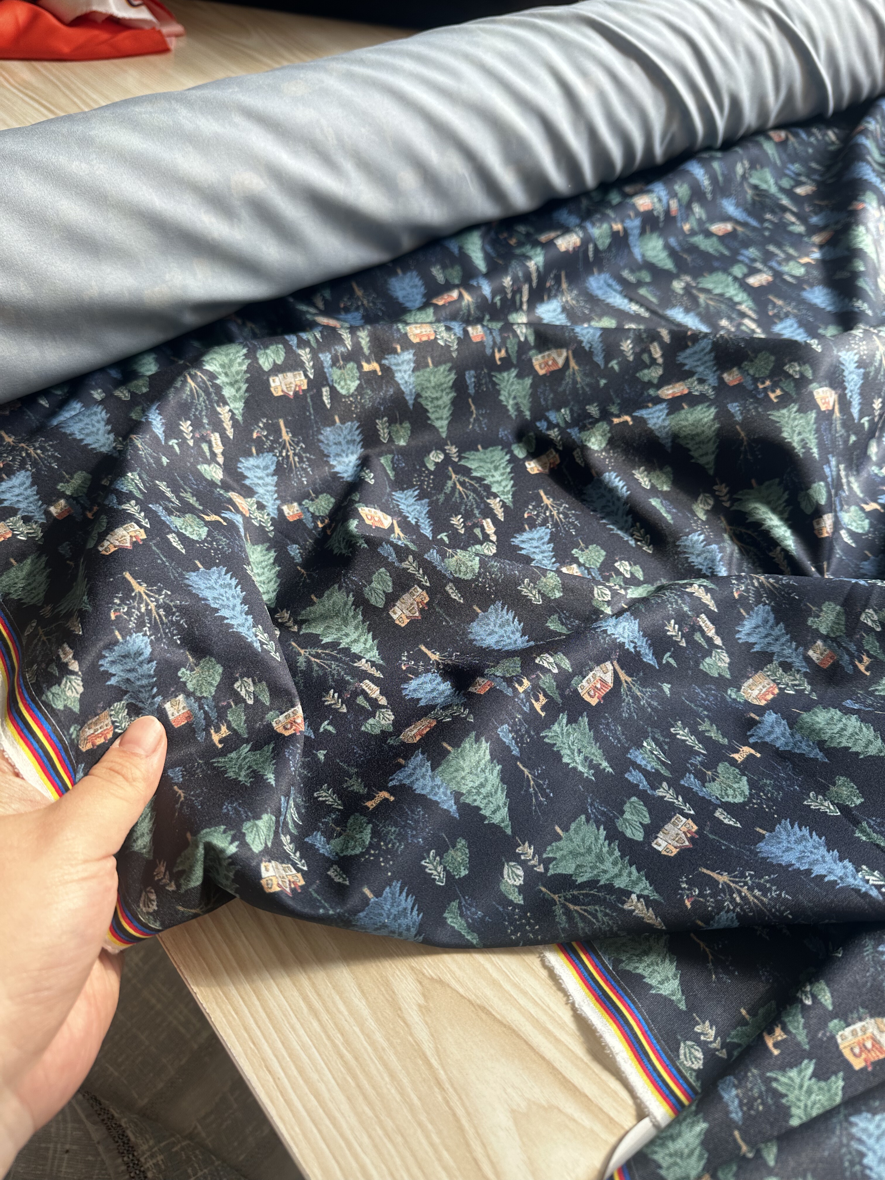 📚 一米 深色小房子款 弹力 缎子布料 0145面料(宽1.45米左右)
