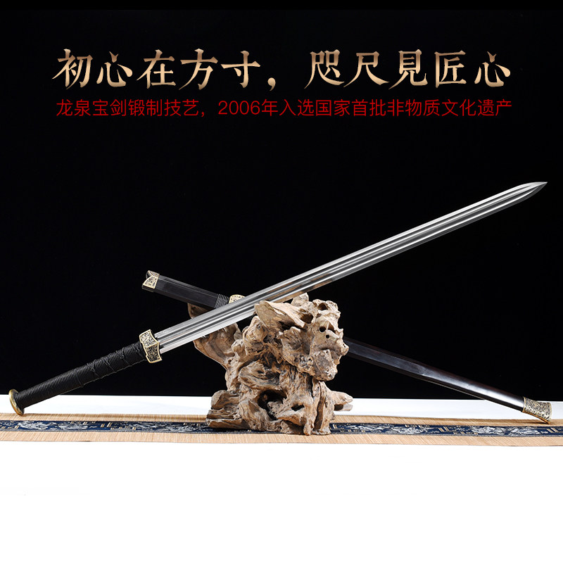 📚 干将莫邪龙泉市周松清宝剑八面扁柄四神兽汉剑冷兵器花纹钢未开刃