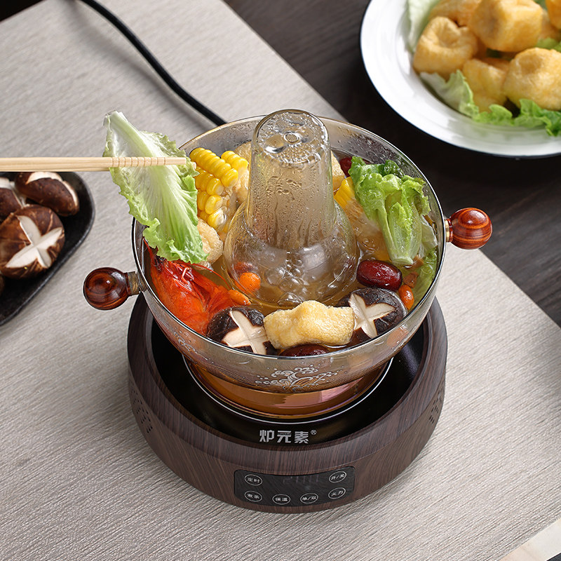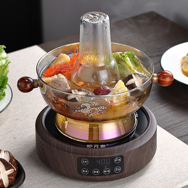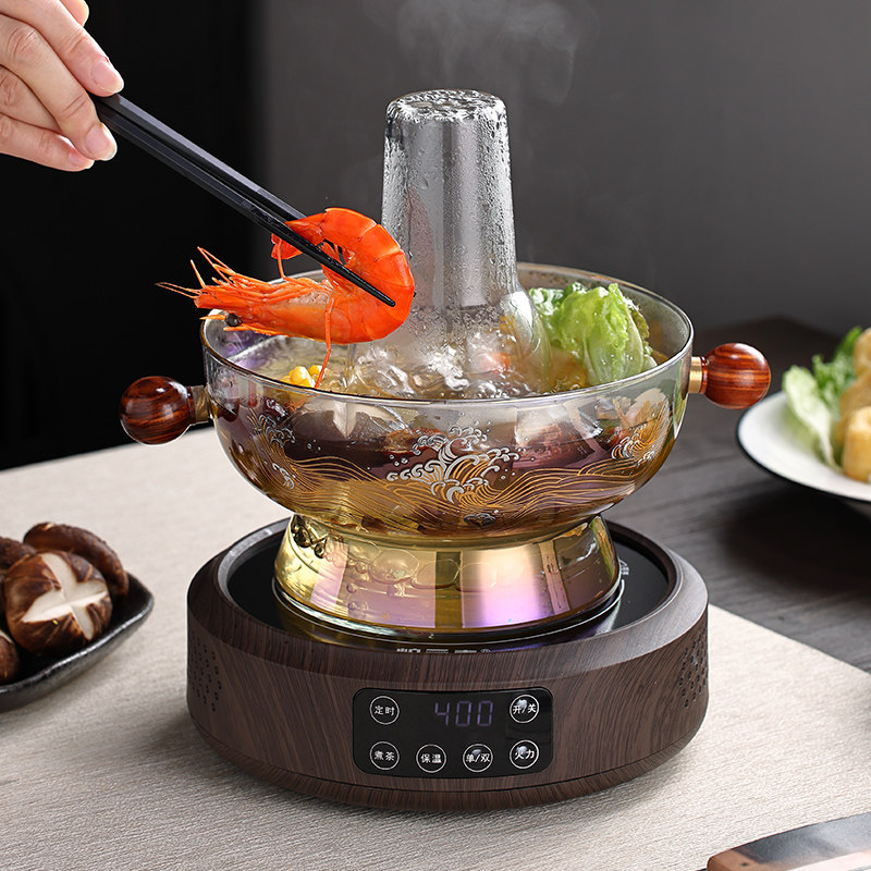 📚 玻璃火锅家用围炉电陶炉插电老式涮羊肉老北京鸳鸯锅港式打边炉