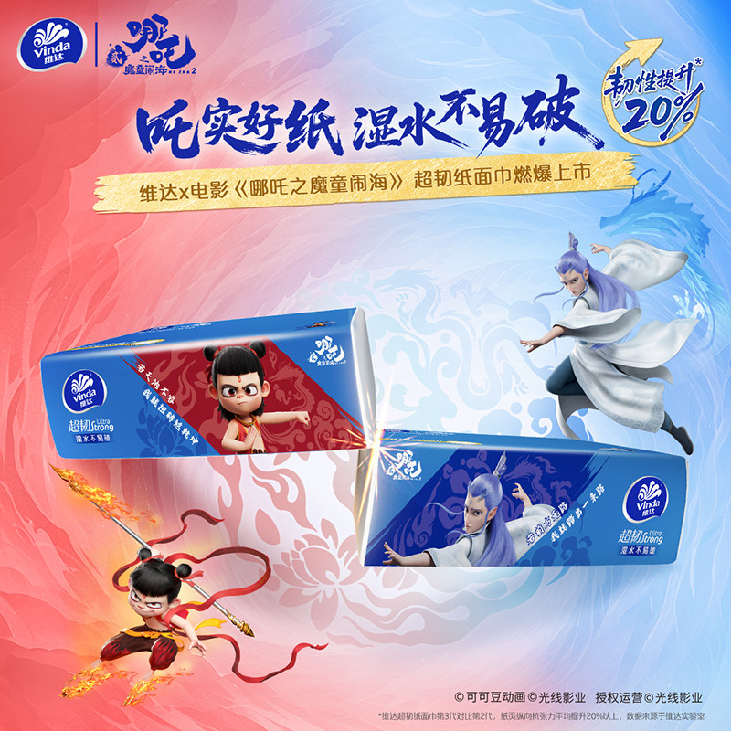 📚 维达哪吒联名款超韧抽纸M码2元家用大包纸巾餐巾纸一分钱攒纸