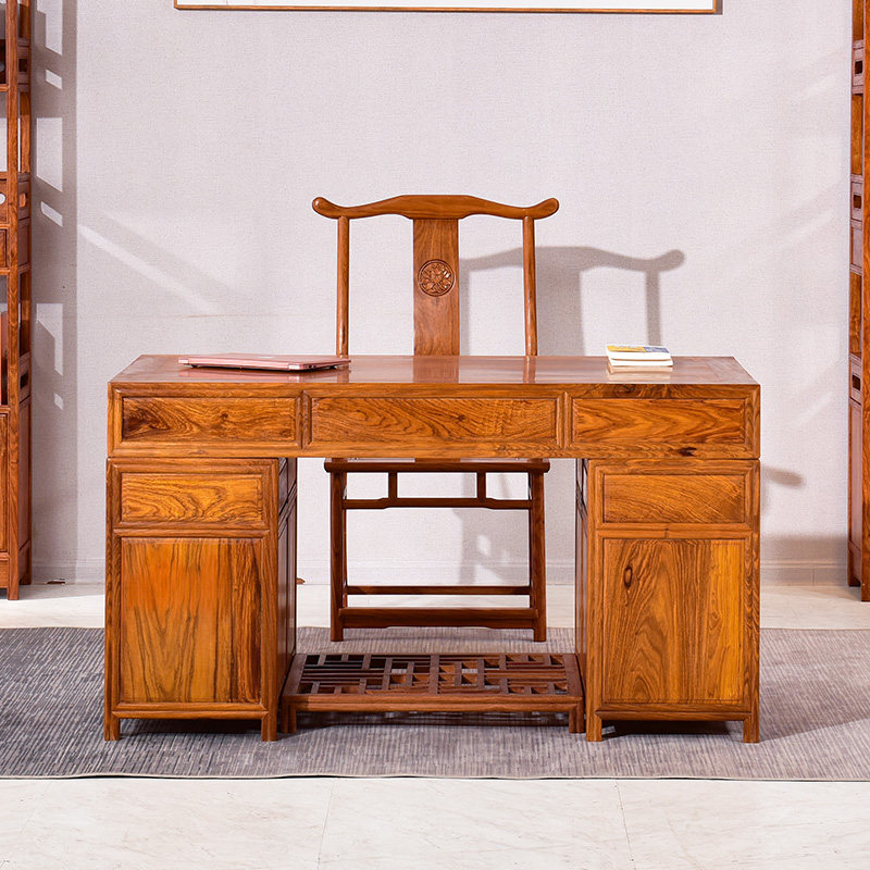 📚 刺猬紫檀花梨木办公桌电脑桌椅组合中式实木写字台桌红木书桌老板